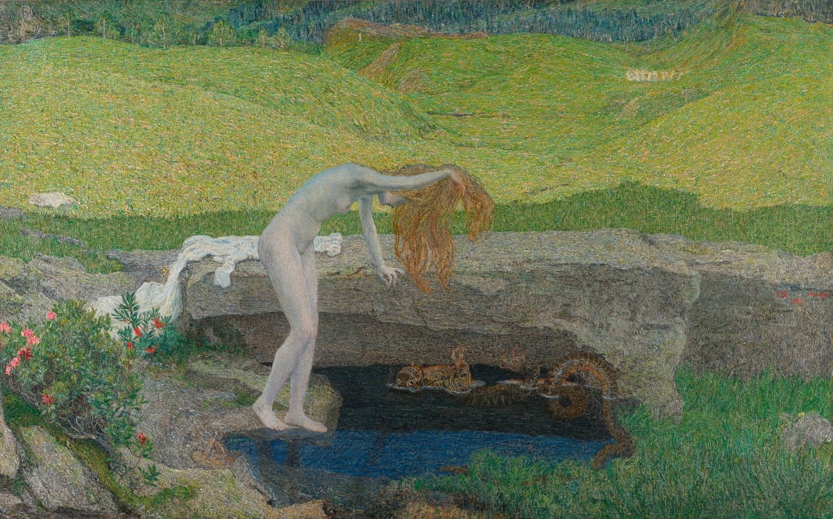 Trascorsi dieci anni dall’ultima monografica sul pittore, a Bassano si propone un percorso cronologico, curato da Niccolò D’Agati, che prende il via dagli esordi di Segantini a Milano, tra Scapigliatura e Naturalismo, presentando non solo ritratti e scene cittadine (compreso il finora inedito Vado a teatro), ma anche un nucleo di nature morte, tra cui spicca l’Oca appesa del 1881. Si approfondisce, quindi, il rapporto tra l’artista e Vittore Grubicy De Dragon, suo gallerista e amico sincero – fino a quanto non fu dimenticato dal suo protetto alla metà degli anni ’90 –, per poi illustrare a suon di capolavori le successive tappe compiute dal pittore. Nelle campagne della Brianza Segantini dipinse opere pastorali e fortemente poetiche, spesso dai toni scuri; quindi, l’artista si trasferì a Savognin, nel Cantone grigionese, e lì mise a punto una tecnica pittorica divisionista basata sulla “bellezza armonica”. Infine, trascorse gli ultimi anni della sua breve vita a Maloja, località svizzera in cui diede corpo a un “simbolismo naturalistico” nel quale natura e idea si fondono in un linguaggio inimitabile.