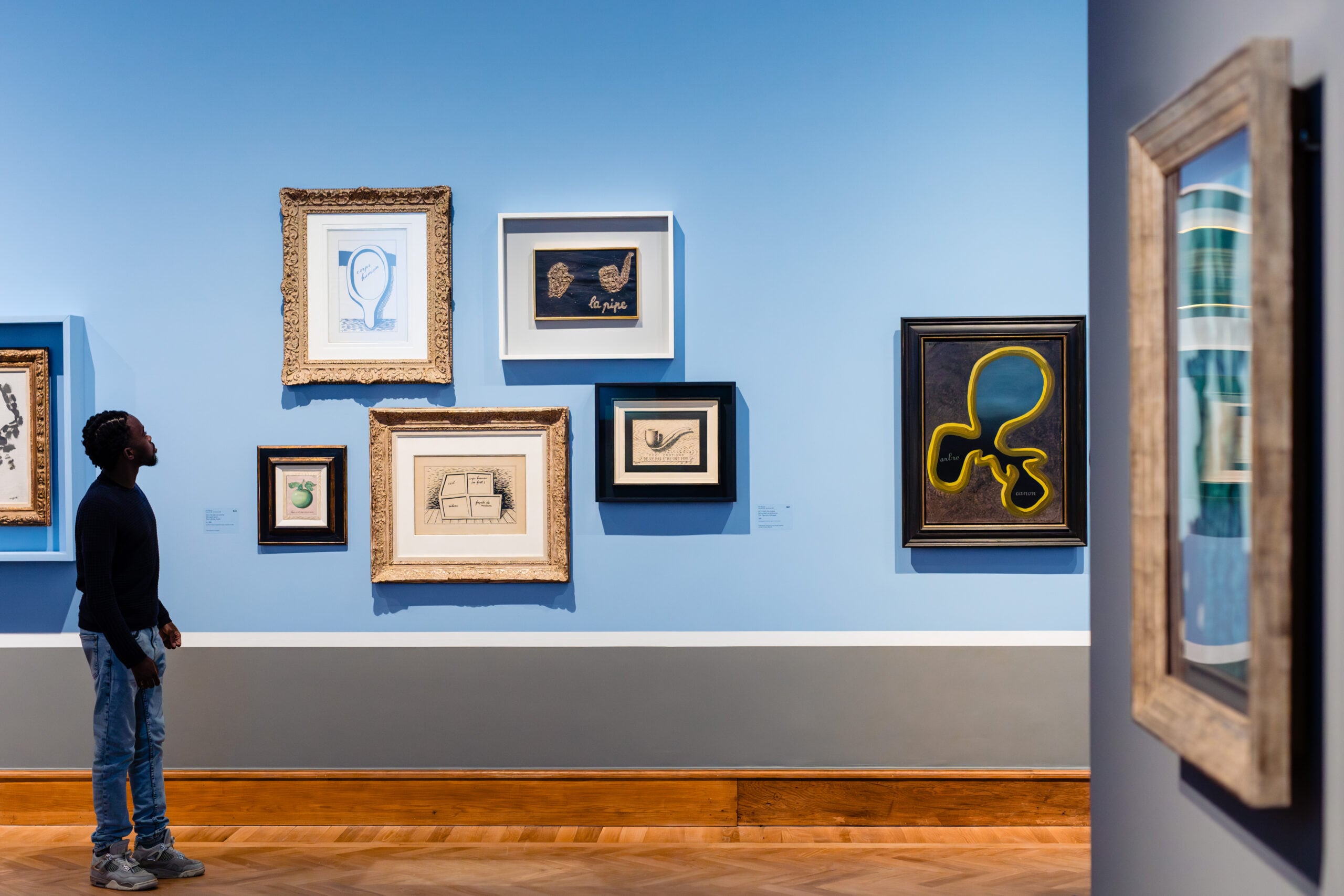 Lo spunto da cui prende piede l’intero tragitto di visita (che conta nel complesso oltre cento lavori tra dipinti su tela, carte e qualche rarissima scultura) è infatti una singolare conferenza che lo stesso Magritte tenne nelle sale del museo nel novembre del 1938, quando era già considerato uno dei massimi esponenti del Surrealismo. Si tratta dunque di un “ritorno a casa”, celebrato quasi novant’anni dopo per sottolineare il valore che ebbe all’epoca quell’incontro, e preso come spunto di racconto per tracciare il modus operandi del pittore. Nel corso di quell’importante lectio magistralis (la prima dei soli tre incontri pubblici tenuti in vita dall’artista), il maestro fiammingo raccontò la nascita e gli sviluppi della sua poetica, ponendo l’accento sui temi ricorrenti all’interno dei propri dipinti e sulle sfumature concettuali del suo universo visivo. Tali gruppi tematici, come quello della “donna”, della “porta” e della “finestra”, costituiscono gli snodi fondamentali del percorso espositivo.