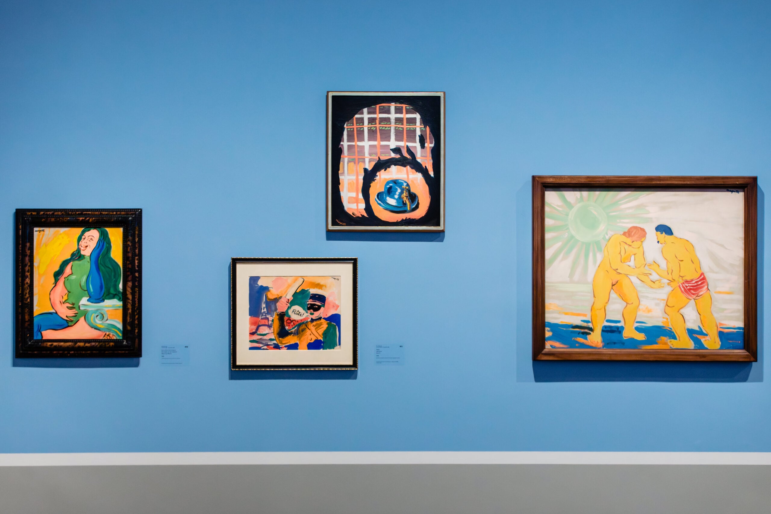 Curato da Xavier Canonne, storico dell’arte e docente universitario specializzato nel Surrealismo belga, il progetto segue gli argomenti affrontati nella conferenza, presentandosi come una sorta di “racconto visivo” di quello storico talk – a partire dalla presenza di molte delle opere accennate in quell’occasione. Si passa da Femme ayant une rose à la place du coeur e Les grands voyages (rispettivamente del 1924 e del 1926), prime prove si contatto con la poetica simbolista ispirate a Giorgio de Chirico, a La clef des champs del 1936, concesso in prestito dal Museo Thyssen-Bornemisza di Madrid. Il tragitto di visita si sofferma poi sui collage ispirati a Max Ernst, e sul prolifico periodo parigino di Magritte, forse il più denso di tutta la sua carriera. Nei tre anni spesi nella capitale francese, il pittore produsse infatti oltre quattrocento opere, quasi tutte all’insegna dell’ignoto, e per questo accolte (non sempre in maniera immediata) nel gruppo surrealista. Chiudono il percorso di visita un delizioso gruppo di illustrazioni erotiche del 1946 (raramente esposte prima) e il “capitolo” dedicato a quei pittori di Anversa che parallelamente e subito dopo Magritte, ammirarono e riverberarono la sua poetica con declinazioni molto personali: tra questi il regista Marcel Mariën, i pittori Gilbert Senecaut e Roger Van de Wouwer, e il fotografo Leo Dohmen.
