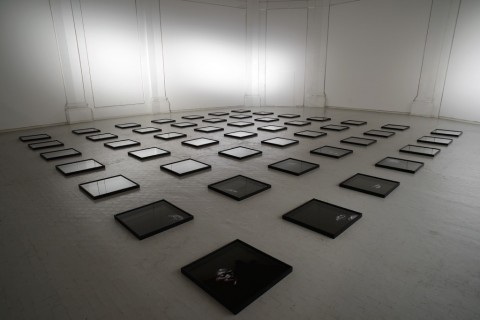 Raggiunsi un’empatia col soggetto, col luogo. Quei volti mi ricordavano gli amici immaginari di Fernando Pessoa. La Chiesa del Suffragio di Pesaro, cittadina di mare sull’Adriatico, teatro di migrazioni importanti, mi è da subito sembrata il luogo dove “rifare” Molti. Dopo il Museo Madre, nonostante vari inviti a ripresentare quel lavoro, non ho mai trovato uno spazio idoneo come questo di Pesaro. Tant’è vero che quel soggetto l’ho esposto in altri modi, mettendomi in relazione con spazi che apparivano diversi e non idonei alla forma originaria che quel lavoro aveva assunto al Madre nel 2009. Nella Pescheria l’installazione raggiunge una sacralità, un’essenzialità. Quando entri dal portone della chiesa vedi solo la struttura dell’opera ma nessuna immagine; la visione immediata che hai è l’insieme delle cornici, che sono per me anche bacinelle e lapidi, che sembrano umide, bagnate. Ti avvicini e scopri che ogni cornice contiene l’immagine di un volto con gli occhi chiusi che è lì. Nel mio immaginario i visi sono in fondo al mare, dormienti. I volti diventano Molti perché ignoti, senza un nome. Non hanno un punto di vista, spesso appaiono capovolti o di lato, riposano nel nero profondo del mare. Il cristallo su ogni cornice allontana il volto dalla superficie, lo rende distante. Sono lì, sono i testimoni della storia di uomini. L’installazione è disposta come se fosse un cimitero militare; sono loro i veri eroi del nostro tempo. Sei costretto a guardare i loro volti dall’alto, come oramai guardiamo lo straniero, l’intruso. Per scrutare al meglio la fisionomia del volto, nella luce bassa che connota il luogo, bisogna inchinarsi come fosse una confessione, per scoprire il tuo volto che si affianca al suo. Nonostante io racconti una grande tragedia, le immagini mi restituiscono un senso di profonda dolcezza. Il senso del buio, l’apparire lento dell’immagine e l’adattarsi alla luce rappresentano tutta la mia vita trascorsa nella camera oscura, quest’ultima è fonte d’ispirazione della maggior parte delle mie installazioni che hanno sempre un riferimento all’essenza della fotografia. La camera oscura è un luogo importante in cui ripenso al lavoro svolto.