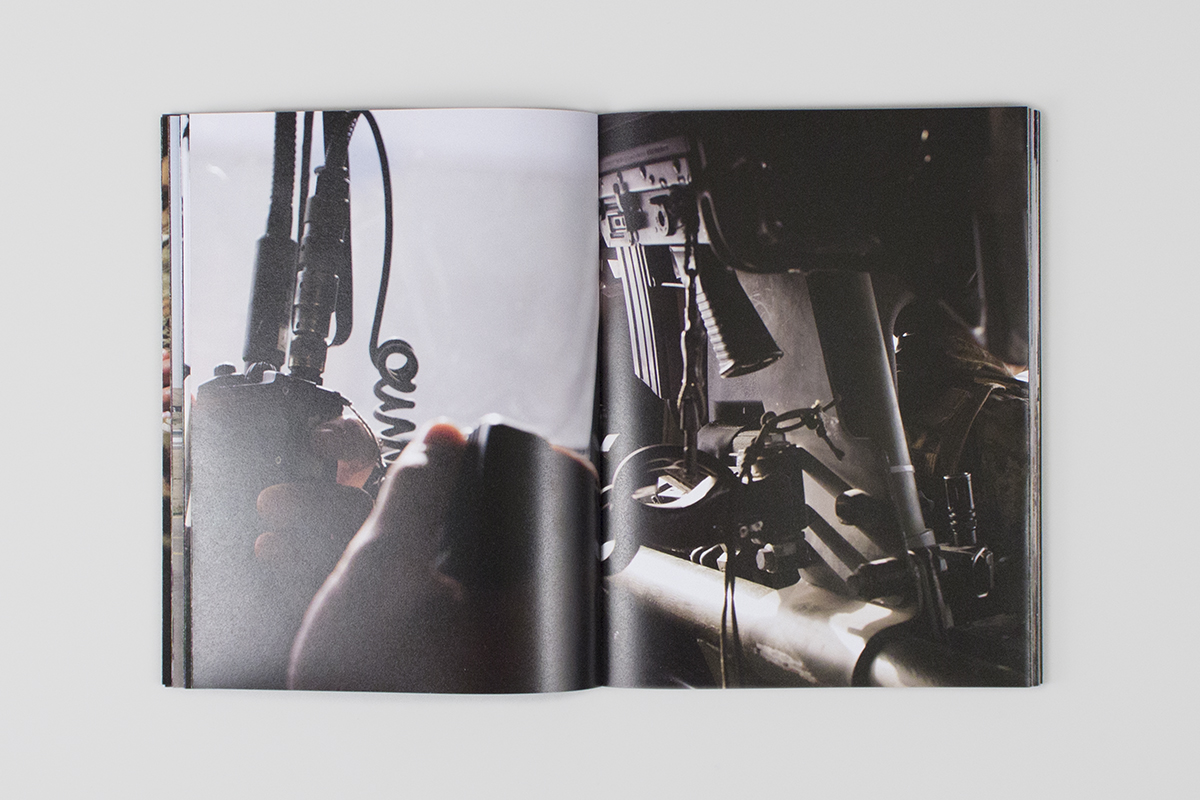 Con queste immagini la fotografa milanese individua la dichiarazione di una guerra e contemporaneamente la sua assenza. Non esiste la guerra, ma ne esistono gli strumenti: le armi divengono gli oggetti inanimati che appaiono quasi come per caso tra gli spazi stretti e angusti dei mezzi militari. Mostrare il senso di una guerra attraverso lo smarrimento, la sua perdita sia di significato che di atto: missioni di pace che indossano i vestiti di una guerra passata, in fondo mai vista e qui rappresentata nei suoi codici precisi e attentamente studiati. Non una messa in scena, è evidente, ma la rappresentazione di un contemporaneo che è qui e adesso vivo solo nella sua perenne scomparsa: l’assenza di alcuna possibile sterilizzazione annulla ogni possibile drammatizzazione, non restano che i dettagli o gli ampi e accecanti paesaggi del nulla.