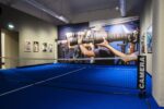 Le fotografie dedicate al tennis delle sale 5 e 6 costituiscono in effetti il cuore della mostra, sottolineato dall’allestimento che riproduce un vero campo da tennis circondato da wallpaper di grandi dimensioni. Il pubblico è ritratto festante sugli spalti mentre su un’altra parete i fotografi professionisti sono intenti a riprendere i campioni in azione. Un’autentica spettacolarizzazione della mostra, con un allestimento scenografico che trasporta i visitatori nel vivo di un match, riproponendo le atmosfere di Wimbledon o del Roland Garros, degli Australian Open o degli US Open.