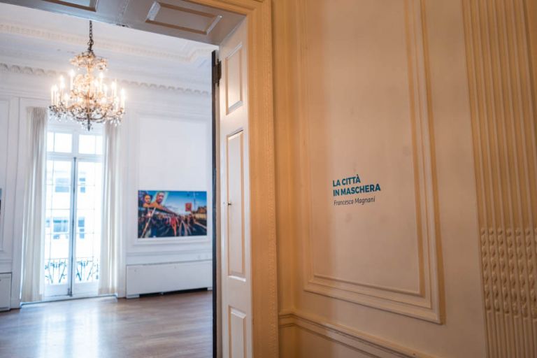 Una serie di 25 fotografie, in cui la padovana Francesca Magnani ripercorre il periodo di pandemia e l’attuale rinascita della grande mela usando il filo conduttore della maschera, ricollegandosi idealmente con uno scenario di ballo veneziano alle sue radici venete. È la mostra La città in maschera, prorogata fino al 10 dicembre nella sala principale del Consolato Generale Italiano nella Henry P. Davison House, un palazzo su Park Avenue e la Sessantanovesima Strada costruito per il banchiere omonimo nel 1917 da Walker & Gillette in stile neo-georgiano. Questo spazio ben si adatta a una suggestione del genere, creando un forte contrasto tra le location delle fotografie e il genius loci molto specifico di Uptown. Domino Park, il ponte di Williamsburg, le marce di protesta che giornalmente nell’estate 2020 si susseguivano a Downtown Brooklyn, e la passerella di legno a Coney Island su cui si balla ogni domenica faranno da sfondo per il prossimo mese agli incontri istituzionali in Upper East Side, mettendo in atto una sovrapposizione che introduce il piacere di una più approfondita forma di conoscenza che supera immediatamente la funzione dello scatto singolo.