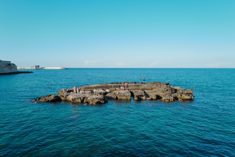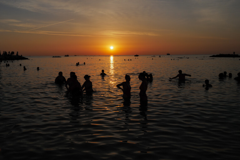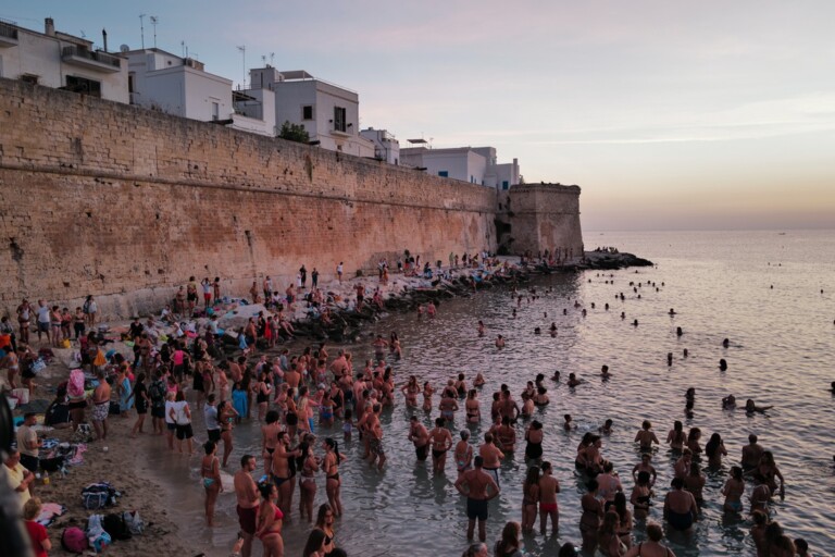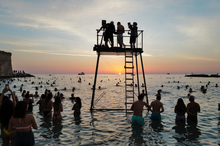 Centinaia di persone si sono riversate sul litorale per tuffarsi nel mare al sorgere del sole. Un rituale collettivo che è stato ripreso dalla sessione fotografica dell’artista nell’ambito della manifestazione Panorama Monopoli, in corso fino al 4 settembre