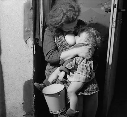 La seconda analizza le immediate conseguenze del conflitto, con gli scatti di Werner Bischof. Particolarmente commovente è quella della mamma mentre allatta il suo bambino. Un gesto naturale che esorcizza l’ideologia della morte appena sconfitta. Con i suoi reportage dedicati ai bambini europei David “Chim” Seymour mostra l’oscillare tra la tragedia della privazione dell’innocenza e la speranza nel futuro. Sono fotografi che capiscono quanto sia importante documentare le conseguenze della guerra: l’Europa in rovina nelle sue famiglie sfollate, nelle città annientate, nella lotta per la ricostruzione risollevandosi dalle macerie, nei primi barlumi di speranza.