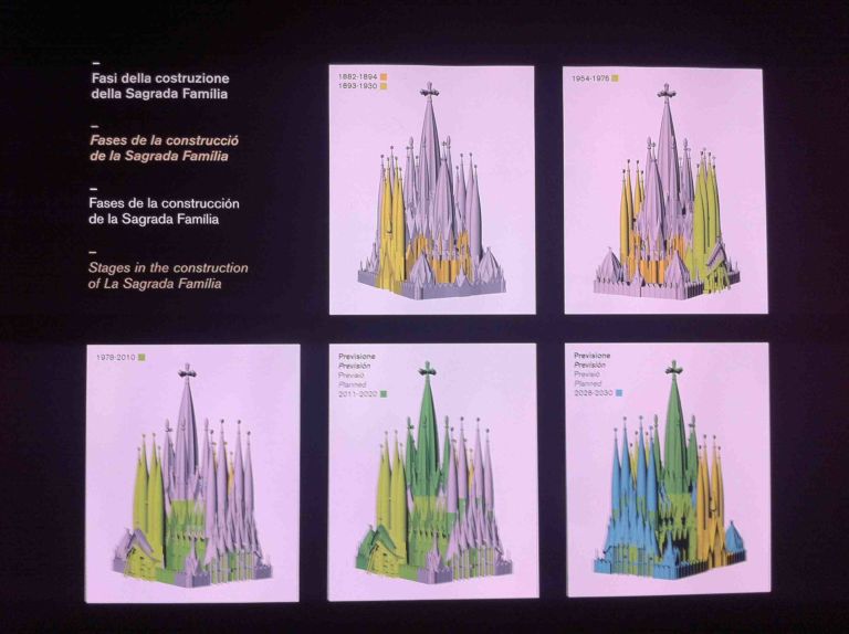 La mostra occupa 800 mq del Braccio di Carlo Magno in piazza San Pietro ed è articolata in quattro sale. Nella prima si indaga il rapporto, intenso e tormentato, di Gaudí con la Sagrada Família, per arrivare alla seconda, dove lo sguardo si allarga verso altre celebri opere dell’architetto catalano come Palazzo e Parc Güell, Casa Batllo e Casa Milà. Nella terza sala si approfondisce l’aspetto scientifico-tecnologico della sua produzione. Plastici, ricostruzioni tridimensionali e video fanno comprendere la natura matematica di molte delle forme complesse usate da Gaudí. La quarta area espositiva è dedicata al tema della spiritualità, con una serie di oggetti e mobili originali che l’architetto disegnò per la Sagrada Família. A chiudere, il video del tempio oggi, ultimato negli interni nel 2010 e dichiarato Basilica minore da Papa Benedetto XVI.