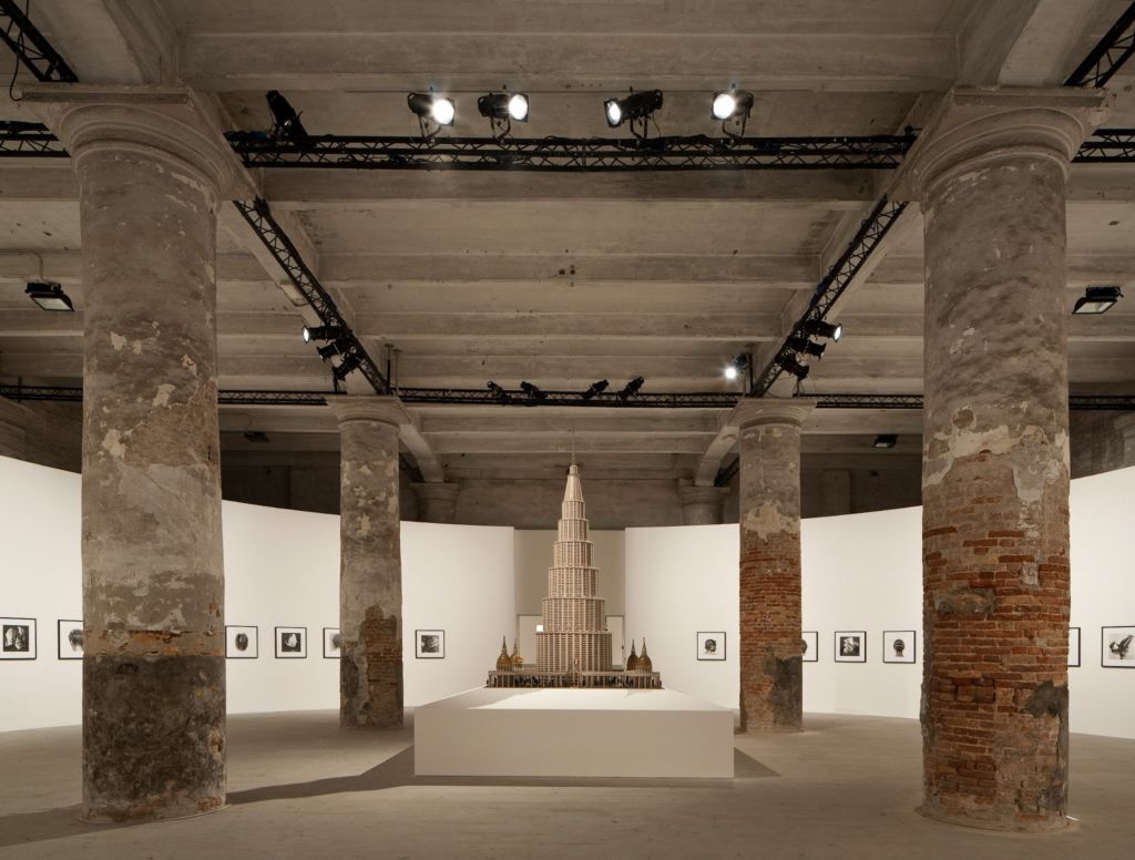 La 55. Biennale di Venezia si erge sul brevetto di un museo immaginario, depositato da un poco noto Marino Auriti, progetto mai realizzato (Il Palazzo Enciclopedico) che avrebbe dovuto ospitare tutto il sapere dell’umanità. Un edificio di 136 piani prefigurato per raggiungere i settecento metri di altezza e occupare più di sedici isolati della capitale del potere per eccellenza: Washington. Il modello fisico, l’originale in legno laccato del Palazzo, è esposto come prima opera dell’Arsenale, perfetta sintesi contemporanea tra un museo delle culture e una biennale: segno di un progresso utopico alla ricerca di un’identità politica globale.