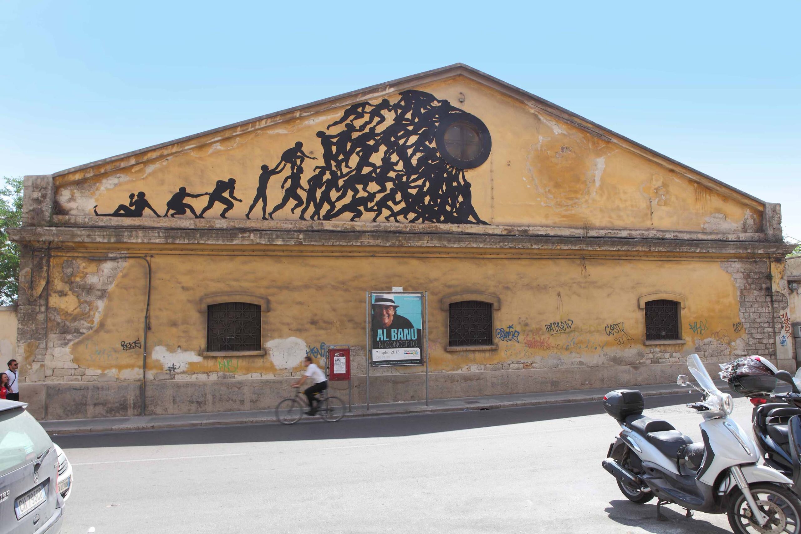 Si parte da Bari, dove si trovano il Teatro Margherita e la Sala Murat, sedi del futuro Museo d’arte contemporanea che sarà diretto da Massimo Torriggiani, già affascinanti di per sé (ad esempio, la Sala Murat ospita un walldrawing di Sol LeWitt, dateci un’occhiata). Da Doppelgaenger, nel cuore di Bari Vecchia, si presenta invece la mostra dell’artista spagnolo Sam3, anche autore del murale che sovrasta la Caserma Rossani, distante pochi isolati, verso il quartiere Picone-Carrassi. Merita una visita e sicuramente un check delle pagine facebook e sul blog, Planar, al Quartiere Libertà, che offre bookshop e un programma serrato di talk, performance, eventi e altro ancora.