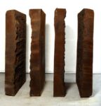 Alla modularità concettuale e fredda degli Anni Sessanta e Settanta – quasi scientifica nell’impostazione di molti artisti della sua generazione –, Spagnulo contrappone quindi un doppia polarità, in cui recupera il concetto di spazio, anch’esso modulare, ma in una chiave dialettica più estrema, di radice informale. E all’informale ha sempre guardato nella meno nota produzione su carta, grandi registri di materia in cui i neri bituminosi e una forza espressiva dirompente hanno dominato la sua indagine parallela e certamente autonoma rispetto alla scultura, com’è emerso undici anni fa in occasione della bella mostra che gli ha dedicato la Guggenheim Collection di Venezia, a cura di Luca Massimo Barbero.