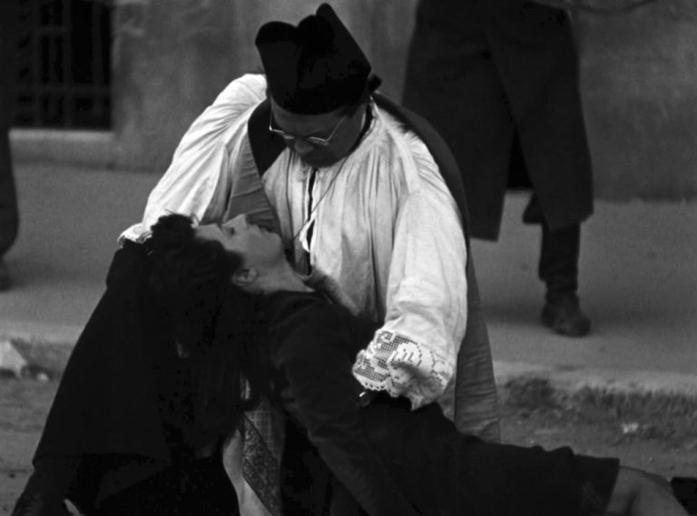 In Roma città aperta (1945) la folle corsa di Anna Magnani, sequenza tra le più celebri della storia del cinema, si conclude con la citazione della Pietà, con Aldo Fabrizi che sorregge il corpo ormai esanime della donna a terra, uccisa dalle milizie responsabili del rastrellamento. I bambini laceri che sfilano in coda di film, dopo avere assistito alla fucilazione del sacerdote resistente, interpretato appunto da Fabrizi, non offrono di sé (o degli italiani) un’immagine di muta rassegnazione: sullo sfondo, monumentale, la cupola di San Pietro si erge a documento di un’incrollabile forza e dignità.