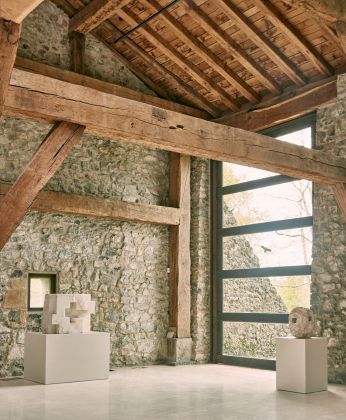 All’interno del Caserío è allestita ora la mostra temporanea Echos, che raccoglie una novantina di pezzi di piccolo e medio formato che raccontano, anche con alcuni prestiti importanti, il percorso estetico e materico dello scultore basco. Lo spazio espositivo ricavato nella casa rurale del XVI secolo ‒ così come lo realizzò Chillida con l’aiuto di un amico architetto ‒ è di per sé molto suggestivo. La luce naturale, i giochi architettonici fra le travi in legno e la pietra a vista, i soffitti di diverse altezze sono il contenitore ideale per opere di potente tridimensionalità, anche quando si tratta di delicati collage di carta o di feltro. Sculture in gesso, granito, alabastro e ferro, sempre pezzi unici anche nel caso dei bozzetti per opere monumentali, che l’artista chiama “aromi”. Chillida plasmava con la proprie mani esperte materiali duri, grezzi, creando di volta in volta forme dinamiche, apparentemente leggere o trasparenti (come nel caso dell’alabastro) o più massicce, come nel caso della tierra chamota, una argilla che può essere lavorata in blocchi compatti.