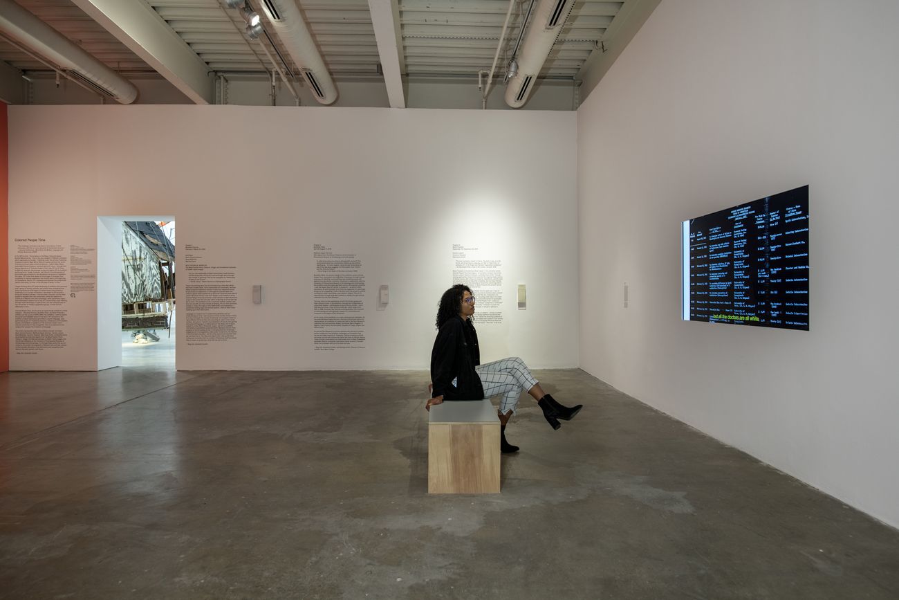 È una mostra sperimentale in tre capitoli (Mundane Futures, dal 1° febbraio al 31 marzo; Quotidian Pasts, dal 26 aprile all’11 agosto; Banal Presents, dal 13 settembre al 22 dicembre). Ho iniziato a pensare a Colored People’s Time (CPT) parlando con i poeti Fred Moten, Harryette Mullen e Claudia Rankine. CPT è una performance politica che turba l’applicazione della puntualità e della produttività, che sono le strutture disciplinari chiave del capitalismo. Sono stata attratta da CPT in quanto espressione vitale e liberatoria. Ha fornito uno strumento linguistico ai neri per esplorare la propria temporalità, dentro e contro la costruzione del tempo occidentale. La mostra comprende oggetti prodotti da artisti, un partito politico, un predicatore battista, un museo di antropologia e un’azienda di videogiochi.