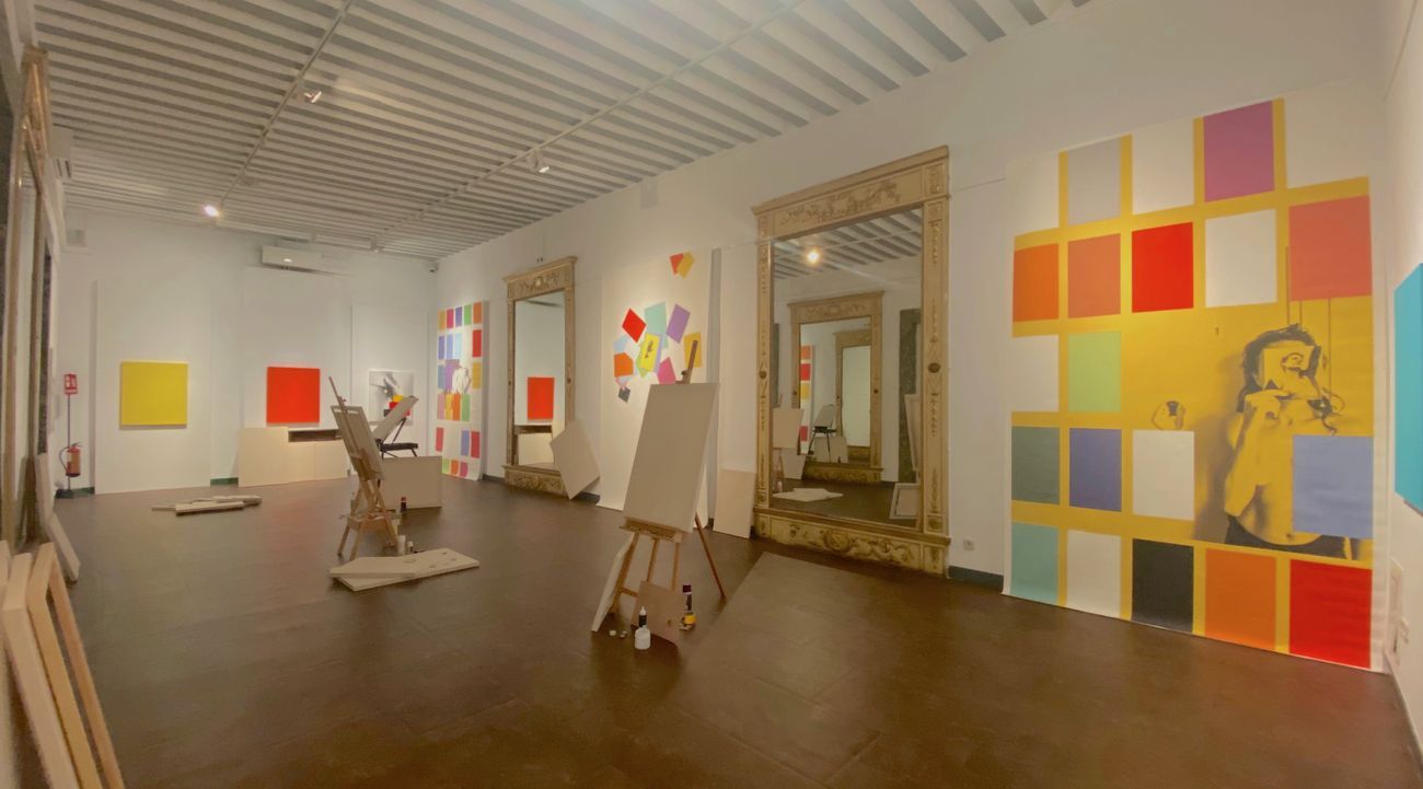 Nella vicina Sala degli Specchi, sfruttando proprio la presenza di tre grandi superfici riflettenti, Marinella Senatore colloca altrettanti cavalletti da pittore, dotati di tele in bianco, carboncini e tinte a olio a disposizione del visitatore che voglia direttamente confrontarsi con il concetto stesso di autoritratto. Con le precauzioni richieste dall’emergenza sanitaria (e l’uso obbligatorio di guanti), l’artista non rinuncia a offrire al pubblico una forma di interazione-partecipazione alla sua opera, creando una sorta di ritratto collettivo formato dai singoli autoritratti che via via verranno realizzati in loco.