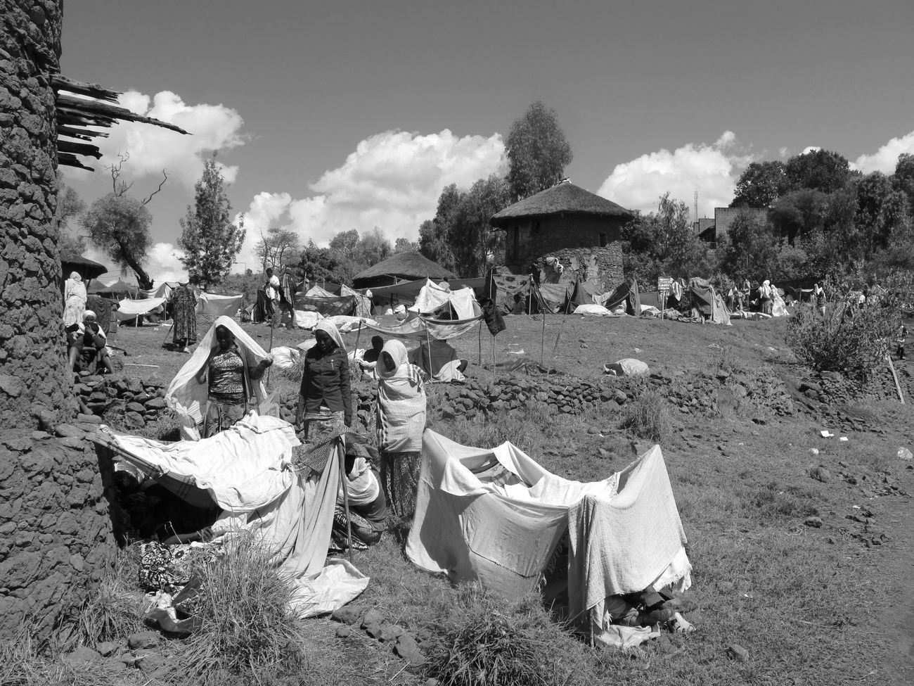 Paradossalmente è stato proprio il suo perdurante status di “terra santa” che ha tolto, per secoli, ogni vis agonistica, ogni fanatismo, al rito che si celebra in questa cittadina a 2500 metri sul livello del mare, con ventimila abitanti che diventano più di centomila a inizio gennaio. È infatti questo il periodo in cui solitamente le genti dell’altopiano, gli Amhara e i Tigrini, contadini e pastori, si mettono in cammino lungo le piste polverose abbigliati come ai tempi della Bibbia: gli uomini con i loro dula, i lunghi bastoni da preghiera, le donne con qualche ramo di pianta benefica, entrambi con il capo coperto dallo shamma, il velo di garza bianca. Formano lunghe processioni dirette verso le chiese rupestri.