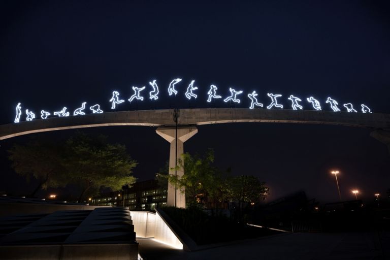 Alla sua prima edizione, la rassegna Noor Riyadh è un segnale di rinascita dopo i difficili mesi della pandemia, nonché un segnale di cauta apertura da parte di un Paese ancora attraversato da profonde contraddizioni politiche e sociali. Il festival comprende 33 installazioni luminose in altrettante zone della città, una mostra storica Light Upon Light: Light Art since the 1960s e un programma di attività speciali tra cui tour, conferenze, workshop, attività per famiglie, film e musica, anche online. Curato da Eiman Elgibreen e Pam Toonen, il festival attraverso il titolo Under One Sky vuole essere un catalizzatore per gli artisti per creare opere che rispondono all’inclusività e alle pratiche umane condivise. Riunirsi intorno alla luce è un impulso umano universale, per guardare le fiamme di un falò così come le stelle. Il festival, quindi, comprende tutte le forme di light art, fra cui sculture, proiezioni, spettacoli interattivi, arte cinetica. Il festival è realizzato da Riyadh Art (il programma nazionale di arte pubblica del Regno dell’Arabia Saudita) e si sviluppa in più zone della città, con due hub principali: il King Abdullah Financial District (KAFD), e il centro storico dell’epoca di Re Abdulaziz. Come ha dichiarato Khaled Al-Hazani, direttore di Riyadh Art, “Noor Riyadh è una celebrazione della luce e dell’arte su una scala senza precedenti. l’arte è un linguaggio universale e la luce è un simbolo di speranza”.