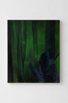 In Alessandro Fogo invece la pittura è in primis visione e allegoria. Forte è la presenza degli animali: gli insetti, i volatili, i serpenti, emergono come l’elemento vitale in grado di essere la chiave del dipinto e funzionare come simboli, l’archetipo eterno su cui si sono basate le culture dell’uomo nei millenni. Essi sono portali della conoscenza, attivatori dell’immagine pittorica, collegamento con una dimensione divina e metafisica, soprattutto sono la scintilla in grado di accendere il lato fortemente evocativo di queste opere. Ne è un esempio in mostra il dipinto affollato di scarabei, lucidi nella loro preziosa corazza fatta di verdi metallici dai riflessi dorati, in movimento lento su una coperta decorata, all’apparenza intenti a risvegliare dal sonno la presenza femminile del quadro. La pittura di Alessandro presenta alcune caratteristiche tipiche della narrazione mitologica. Ogni dipinto è un possibile inizio o un momento cruciale di una storia fuori dal tempo e dallo spazio. Le scene sono sempre notturne, o forse ambientate in qualche strano interno in cui difficilmente entra la luce del sole, e le ombre sono proiettate da luci non naturali. Gli stessi oggetti di tutti i giorni presenti nella scena, così come gli animali, sono caricati di una valenza simbolica molto forte. Nei suoi ultimi lavori sono intervenuti elementi nuovi, e questa evoluzione è leggibile proprio nelle opere in mostra. Da presenza immaginifica e irreale – scultorea – di molti dipinti, la figura umana inizia qui a presentarsi come ritratto e come rappresentazione di qualcosa di vero ed esistente.
