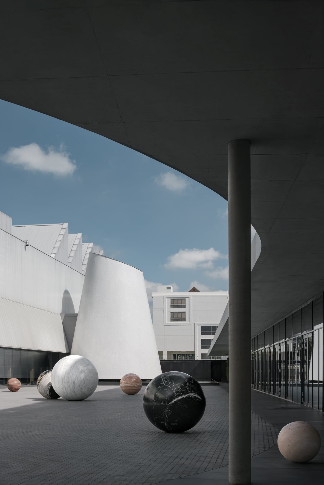 Ora il testimone è passato al figlio Purat; secondo Forbes la famiglia Osathanugrah è al 13esimo posto tra i ricchi della Tailandia. La collezione si è ampliata: comprende lavori di David Salle, Alicja Kwade, Frank Stella, Takashi Murakami, Kawita Vatanajyankur. Che in questi giorni cominciano ad essere allestiti nelle undici gallerie dell’ex magazzino industriale nel distretto di Khlong Thoei, sede di un programma per l’insegnamento musicale e artistico destinato all’infanzia, coincidenza che avrebbe colpito Petch. Dib, in lingua tai, significa crudo, grezzo; il nome del museo fa riferimento alle origini industriali della location. Ma anche alle emozioni di base care allo scomparso collezionista. Il recupero e adattamento all’uso museale, curato dallo studio internazionale WHY Architecture, contiene anche omaggi e citazioni al buddismo Teravada, o del Piccolo Veicolo, aderente agli insegnamenti originali del Buddha, la religione-filosofia più seguita in Tailandia. Per esempio, il tetto seghettato alterna lucernari che creano un ritmo di luce nelle gallerie, un riferimento al concetto buddista di illuminazione. Se le facciate interne mescolano lo Zen con l’architettura modernista occidentale della metà del secolo scorso, una galleria curva chiamata la “Cappella”, evoca da lontano le rotondità di uno stupa. Il pavimento di piastrelle di vetro riflettente del cortile aumentano l’effetto di elevazione dello sguardo e dello spirito.