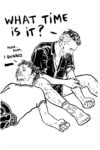 G.G.: Secondo me c’è sempre il desiderio, da parte di entrambi, di essere critici nei confronti del sistema dell’arte. Leggendo i titoli e osservando le immagini proposte, questo intento emerge chiaramente. Bastoni, ad esempio, rappresenta un collezionista di bastoni esaltato, che mostra la sua collezione privata. What time is it?, ci ritrae come due drogati in balia del tempo. Goodbye Mr Artworld, è una conversazione tra l’artista Allen Ruppersberg e il critico d’arte François Piron. Il testo diventa immagine ispirandosi proprio alle opere dell’artista…