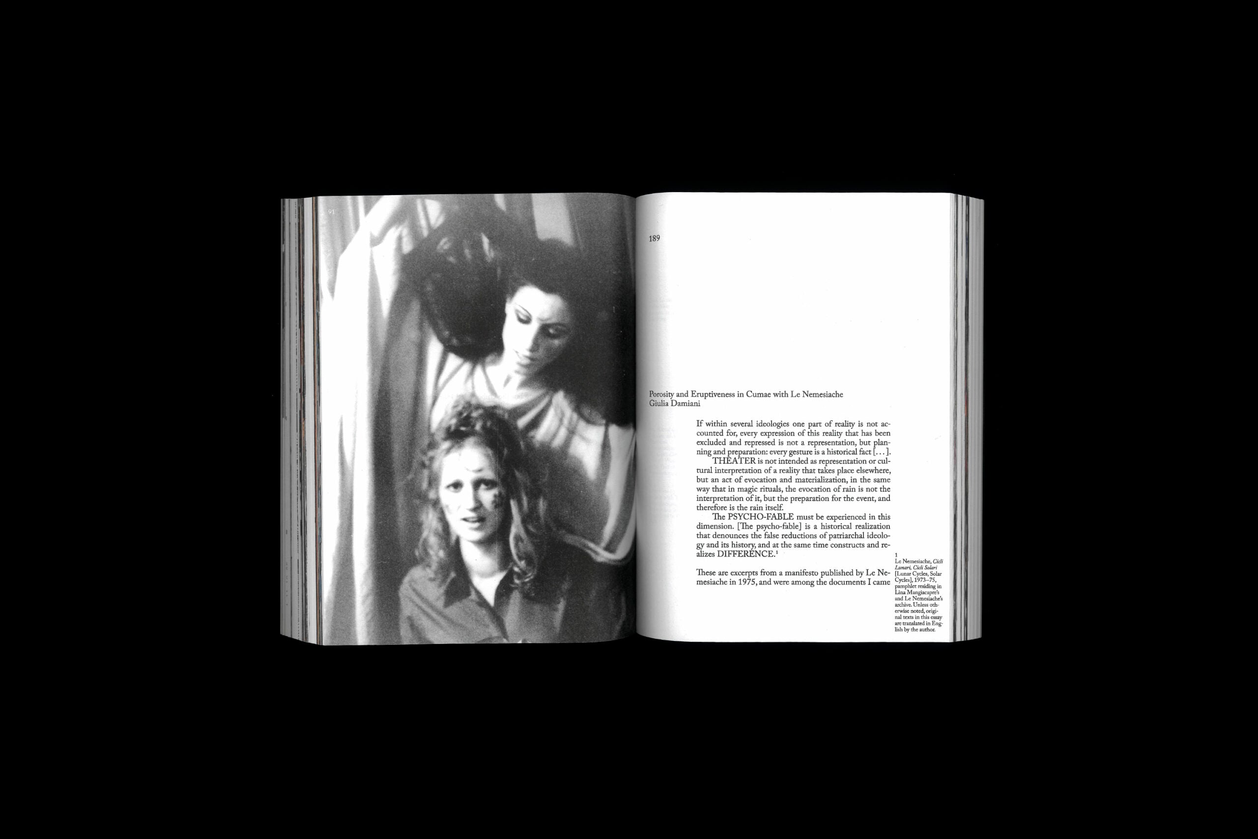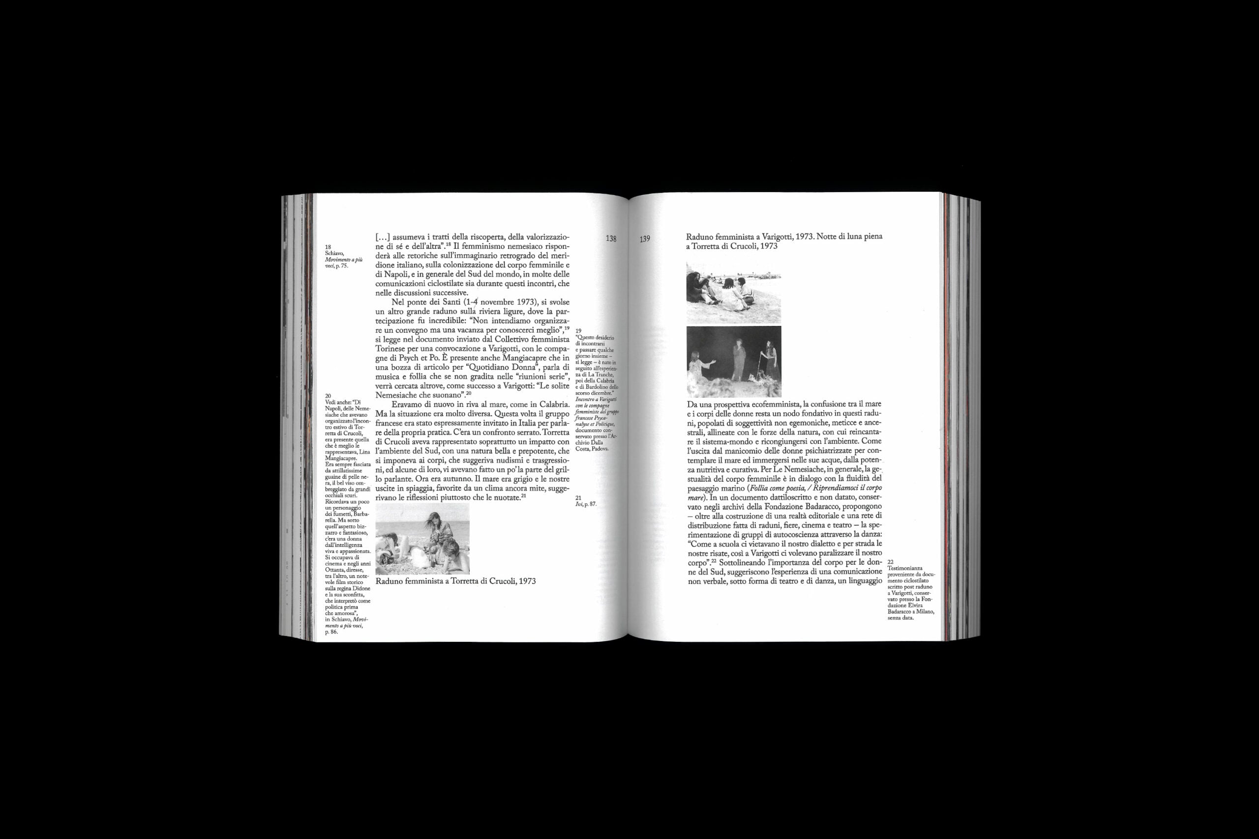 Con Le Nemesiache: Reclaiming Mythological Rituals, D’Alto propone la prima ricostruzione organica del percorso del collettivo napoletano fondato nel 1970 dalla filosofa e artista Lina Mangiacapre. Le Nemesiache, attive tra Napoli, Sorrento e la Costiera amalfitana, hanno intrecciato arte, politica e mitologia in una pratica profondamente sperimentale, capace di trasformare la dimensione personale in azione collettiva. Il volume bilingue (italiano e inglese) raccoglie documenti d’archivio, fotografie e materiali inediti provenienti dall’Archivio Le Tre Ghinee e dall’Archivio Privato Lina Mangiacapre, e accanto alle testimonianze visive, il libro include testi di studiose e curatrici come Chiara Bottici, Federica Bueti, Cairo Clarke, Arnisa Zeqo, Giulia Damiani, Giusi Palomba, Elvira Vannini e Giovanna Zapperi.
