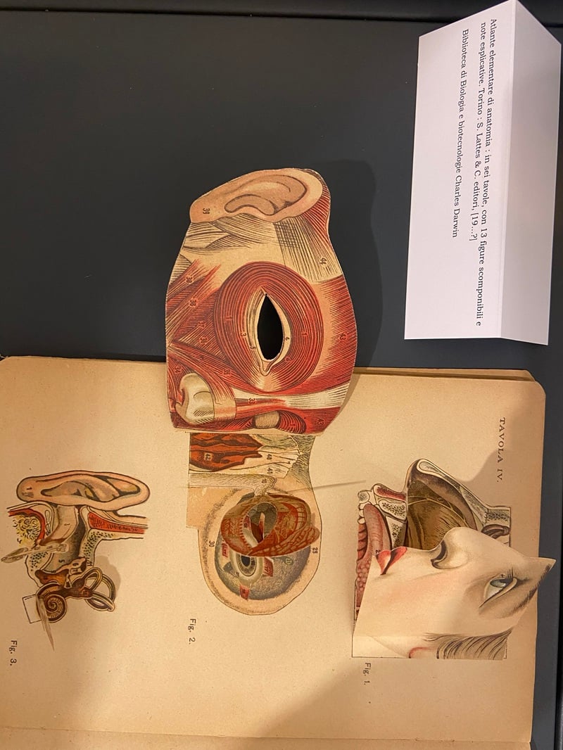E allora si spazia dal Kalendarius di Regiomontanus (1476) – primo libro italiano a stampa dotato di frontespizio in volgare, ma anche primo volume a integrare un dispositivo mobile – che sintetizza la cultura matematica e cosmografica del primo Rinascimento, al De humani corporis fabrica libri septem (1543) di Andreas Vesalius, che sancì l’inizio dell’anatomia moderna e permetteva di ritagliare e ricomporre le diverse parti del corpo umano. Sempre cinquecentesco è il Cosmographicus liber (1524) di Petrus Apianus, antesignano nell’utilizzo di parti mobili (volvelle strutturate nella forma di dischi di carta, sagomati e sovrapposti, e fissati alla pagina sottostante attraverso un perno) per calcoli calendariali e astronomici. In mostra si scoprono, ancora, un’edizione rinascimentale di Vitruvio (un esemplare de I dieci libri dell’Architettura di M. Vitruvio, tradotti da Daniele Barbaro e illustrati da Palladio) e un manuale seicentesco per la confessione, la Confession coupée (1639), che includeva strisce di carta col nome dei peccati commessi da mostrare al confessore. Poi il De homine figuris di Cartesio (1662), che riproduce un cuore grazie ad un assemblaggio di flap, e le tavole animate della Botanica per tutti, manuale edito nel 1923. Mentre un salto alla seconda metà del Novecento introduce al libro interattivo di poesia combinatoria pubblicato da Raymond Queneau nel 1961: in sole dieci pagine, Cent mille milliards de poèmes intreccia righe di sonetti che il lettore può combinare all’infinito ottenendo sempre una poesia diversa. Negliesemplari più recenti, invece, la tecnica utilizzata per sollecitare l’interazione è quella degli effetti pop-up, come nel libro-giostra dell’artista Anna Onesti (Libro/mare, 2025), opera dell’artista Anna Onesti, che per la mostra ha progettato il quaderno di sala. Per agevolare il visitatore nella scoperta dei libri animati, la mostra propone anche ingrandimenti di pagine e installazioni che simulano alcuni dei dispositivi presenti nei volumi, e un video che spiega il funzionamento di flap e volvelle.