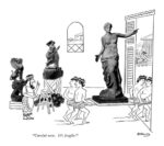 Ci sono i classici pittori e scultori variamente “incomprensibili”, i classici pittore-e-la-modella, i classici visitatori di musei pieni di perplessità, ma anche la Venere di Milo prima della mutilazione, la Piedra del Sol azteca tutta da rifare, una zattera di naufraghi minacciata dalla Grande Onda di Hokusai, e così via. Una piccola enciclopedia del fare artistico dietro le quinte, dove il sorriso arriva puntuale, con uno speciale retrogusto tenero e domestico d’altri tempi. Scomparso due anni fa a Manhattan, 97enne, ora Kovarsky a Manhattan è celebrato con una squisita mostra dei suoi disegni nei bei locali della Society of Illustrators.