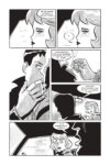 Mattia Tassaro: Non è stato difficile lasciarsi trasportare dalla musica e dalla voce di Ian, che ha guidato l’intera realizzazione del libro, e che a più riprese mi suggeriva sempre nuovi spunti per restituire le atmosfere e raccontare al meglio la loro storia; il rischio di essere didascalici e retorici è sempre dietro l’angolo, sia dal punto di vista narrativo che grafico. Invece il libro è stato concepito come un vero e proprio album inedito, in cui i capitoli sono rinominati come una tracklist, scanditi da un ritmo frenetico e intermittente in cui la band ripercorre le sue origini attraverso un tratto a volte morbido altre duro, e con l’immancabile “mono” dei bianchi e neri netti, decisi e incessanti, come una drum machine.