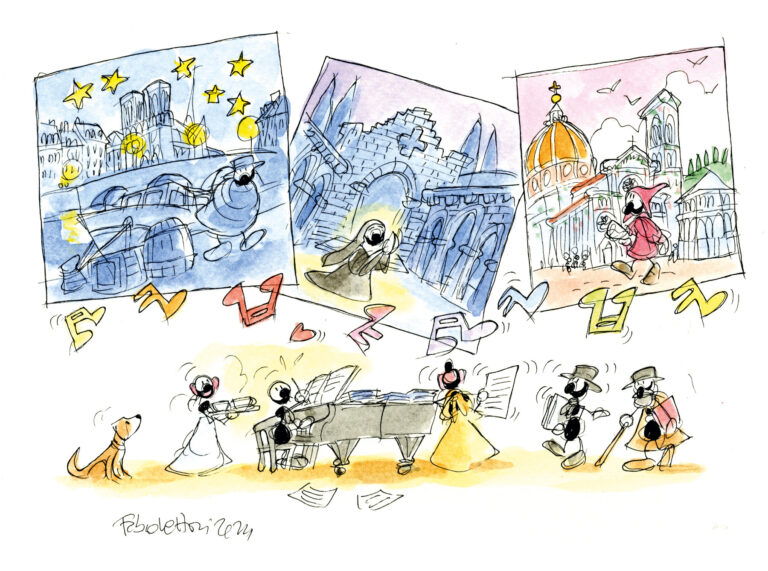 Realizzata in collaborazione con la Fondazione Giacomo Puccini, e inserita nell’ambito delle iniziative di Prima Diffusa organizzata dal Comune di Milano, la mostra vede inoltre la partecipazione di artisti come Silvia Ziche (Topolino), Giuseppe Palumbo (Diabolik), Claudio Villa (Tex), Lola Airaghi (Dylan Dog, Brendon e Legs Weaver), Fabio Celoni (Topolino), Claudio Sciarrone (Topolino e Marvel), Fabiano Ambu (Bonelli), Adriano Carnevali (I Ronfi) e Sandro Dossi (I Puffi). Un “dream team” del fumetto italiano, esposto negli ambienti dell’istituzione meneghina fino al prossimo 5 gennaio 2025.