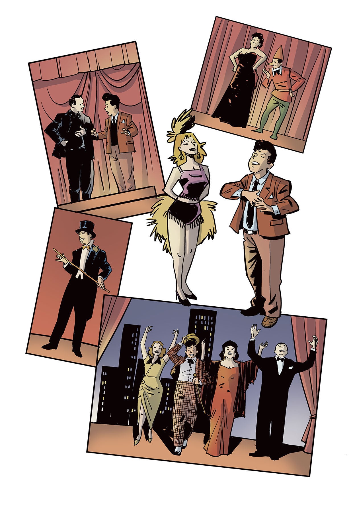 Roberto e Andrea sono grandissimi professionisti. Roberto ha trovato per questa storia uno stile grafico realistico capace di catapultare fin da subito, con uno sguardo, il lettore nei vari contesti in cui si svolgono le avventure del giovane Pasquale Zagaria, destinato a diventare un giorno Lino Banfi. I colori di Andrea, invece, colorano non solo le matite di Roberto ma un periodo storico che parte dalla Seconda Guerra Mondiale, passa per i teatri, le piazze, l’avanspettacolo, le disavventure e i grandi miti dell’epoca come Modugno, per arrivare al sogno di un ragazzino che già da bambino sapeva che, per vivere, avrebbe fatto ridere il pubblico e dal pubblico sarebbe stato molto amato.