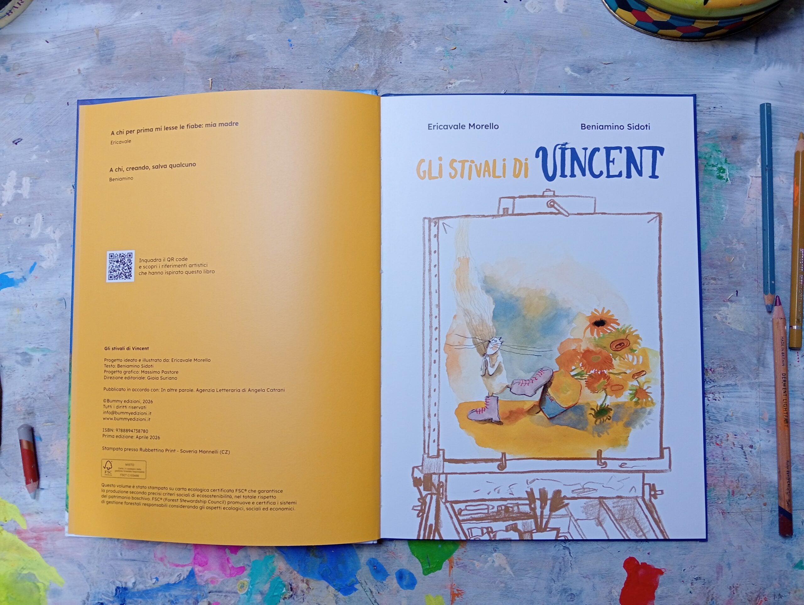 Cosa ci fa il Gatto con gli Stivali nella notta stellata di Vincent van Gogh? Racconta una nuova storia, quella di Gli stivali di Vincent, il libro che inaugura la nascita di Fiabe d’Arte nata dalla romana Bummy Edizioni. Il progetto porta la firma dello scrittore Beniamino Sidoti e dall autrice e illustratrice Ericavale Morello e intende unire il mondo dell’arte con quello favolistico per aprire a nuove narrazioni, fantasiose e trasversali, capaci di soddisfare le esigenze dei giovani e appassionati lettori.
