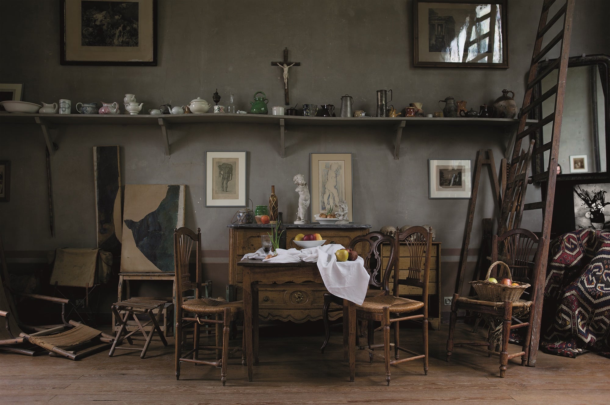 Il fotografo ha poi proseguito la sua ricerca sui maestri della pittura e i loro atelier iconici con il volume Cézanne’s Objects uscito nel 2017 sempre per Damiani, dedicato allo studio di Paul Cézanne a Aix-en-Provence. La prima cosa che lo colpì fu la speciale atmosfera data dal colore delle pareti dipinte di grigio scuro con una lieve sfumatura di verde: stratagemma utile all’artista per osservare gli oggetti nel segno di una inedita piattezza, azzerando volumetria e prospettiva. Un rivoluzionario contributo per gli sviluppi della pittura nel Novecento in chiave anti-mimetica.