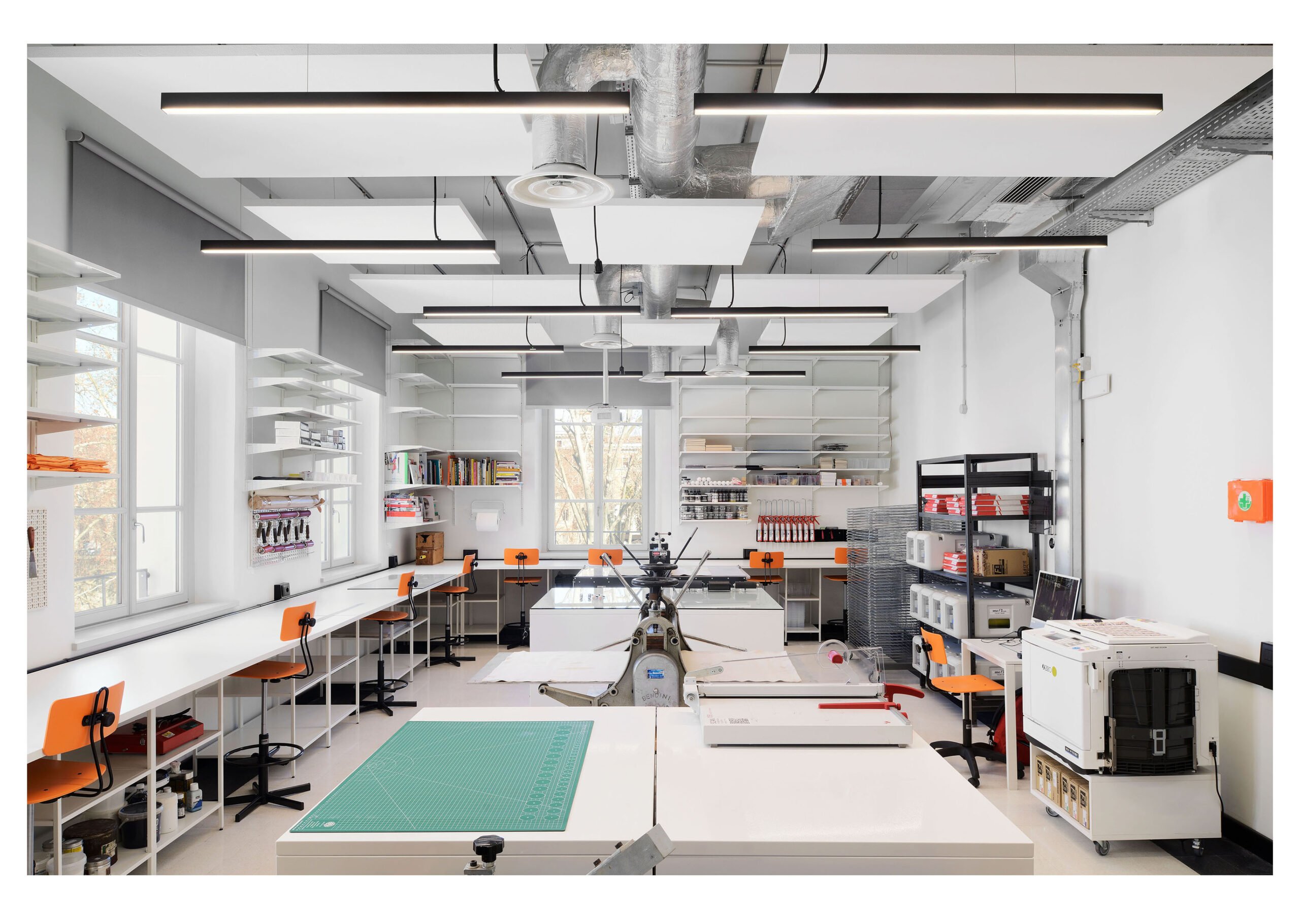 Il progetto di riqualificazione, affidato allo studio AeV Architetti, è stato sviluppato con due obiettivi chiave: in primo luogo, creare un ambiente professionale e flessibile per la produzione artistica; poi ripristinare e valorizzare l’identità storica dell’edificio. Abbiamo lavorato su un processo di “sottrazione” architettonica, rimuovendo le aggiunte incongruenti e riportando in vita gli elementi originali, come soffitti, pavimenti e scale. Le nuove finestre in legno e ferro sono state modellate sugli originali e tutti gli impianti (illuminazione, acustica, ascensore) sono stati progettati per rimanere visibili e facilmente adattabili all’edificio.