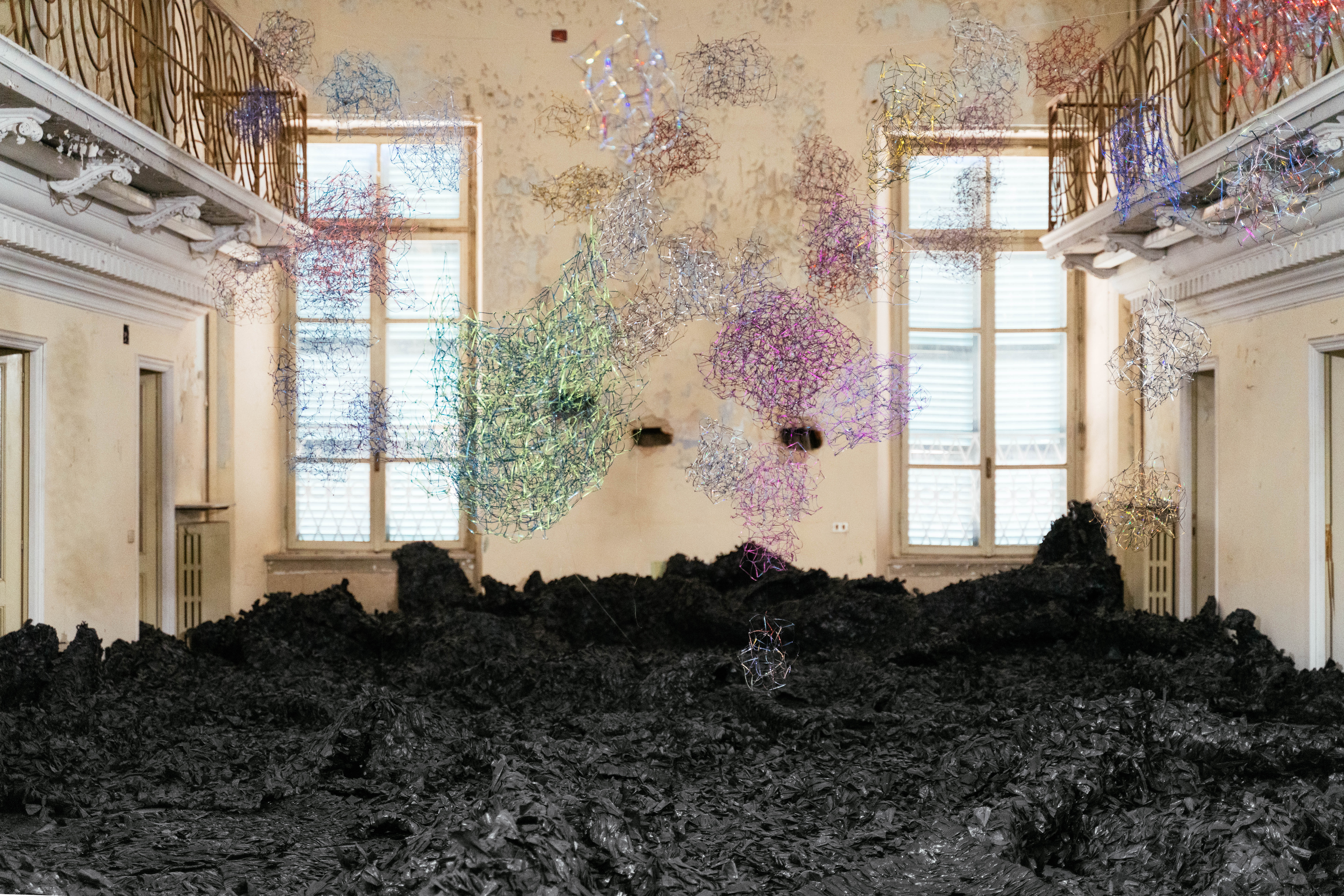 Con più di 450 artisti distribuiti su 12mila mq di spazio, il percorso espositivo si snoda in maniera caleidoscopica lungo piani e corridoi nei quali le opere sembrano essere inserite senza particolari linee curatoriali. Ci si addentra così in una sorta di labirinto dove non mancano pareti senza intonaco, didascalie volanti, e allestimenti che non sempre restituiscono giustizia ai lavori esposti.