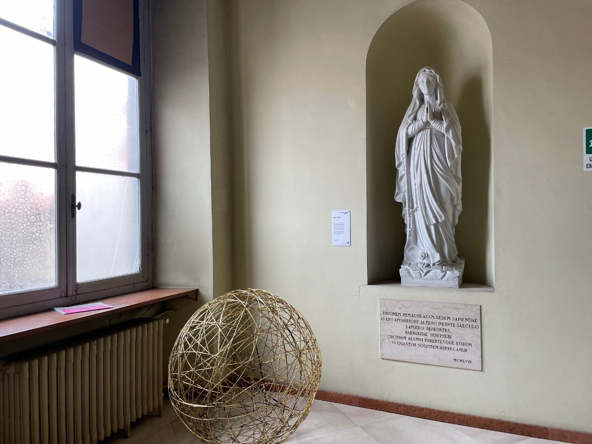 Anche quest’anno la manifestazione rivela la sua natura nomade cambiando nuovamente location: una scelta che, seppur adatta per scoprire e riscoprire determinati luoghi, rischia di penalizzare la rassegna obbligando i visitatori a spostarsi addirittura al di là di Torino in un momento in cui l’offerta culturale in città non manca. Sede di Kosmos – questo il titolo di Paratissima 2025 – è infatti lo storico Real Collegio Carlo Alberto di Moncalieri: un maestoso edificio del XVIII Secolo ricco di fascino, e di stanze da esplorare. La struttura è suggestiva, ma quello che dovrebbe contare più di tutto è la proposta che – come è normale per fiere collaterali come questa – procede tra alti e bassi.