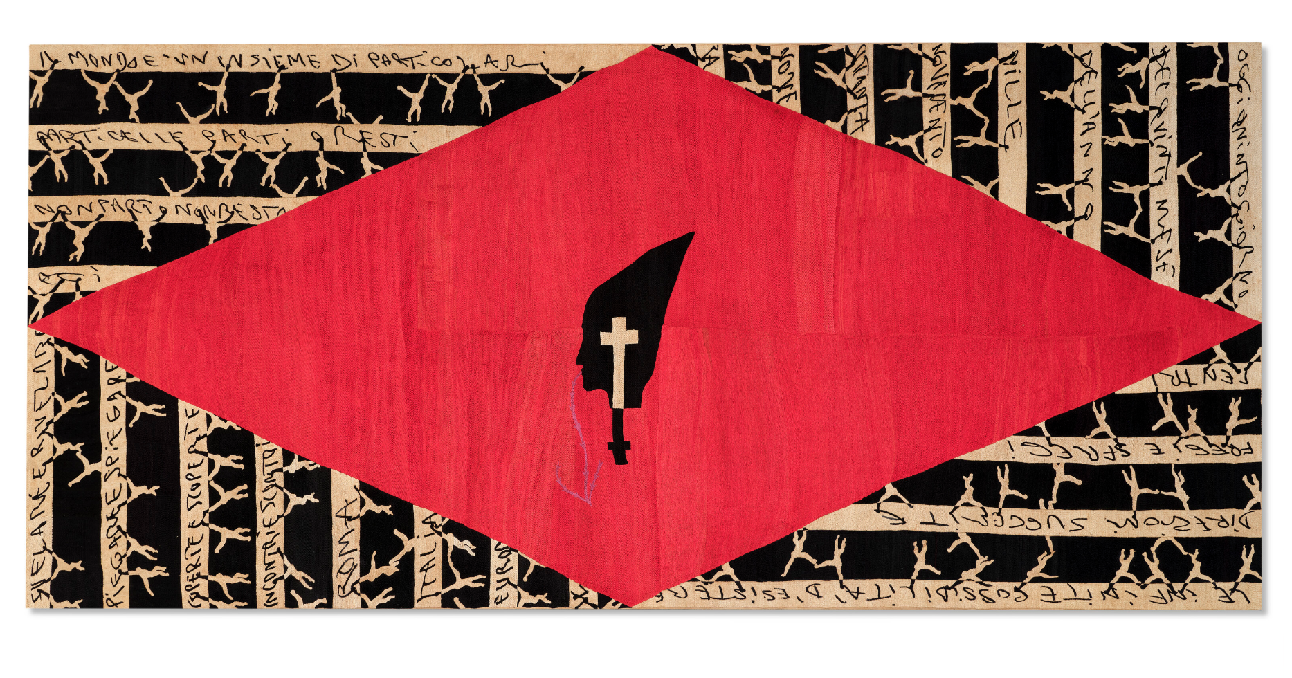 Ottima la ricezione poi per le opere provenienti dalla collezione italiana di Alessandro Grassi, a cominciare dalla competizione accesa per Grande quadro equestre italiano di Mario Schifano del 1978, che da stime preasta di €50.000- 200.000 ha trovato un nuovo proprietario per €508.000. Entro le stime, ma venduto, subito a seguire, Gino De Dominicis con Senza titolo del 1997-1998, passato di mano a oltre 100.000 euro. Era Senza titolo anche un raro arazzo a quattro mani di Alighiero Boetti e Mimmo Paladino, datato 1989-1991, che pure è stato aggiudicato a quota €254.000, oltre la stima massima.