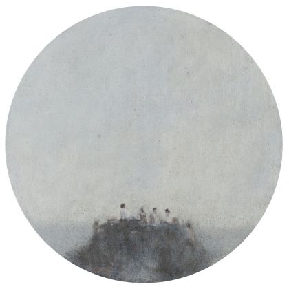 Enrico Tealdi, Tu lo sai, 2019, particolare, tecnica mista su carta foderata su tela, diam. cm 90