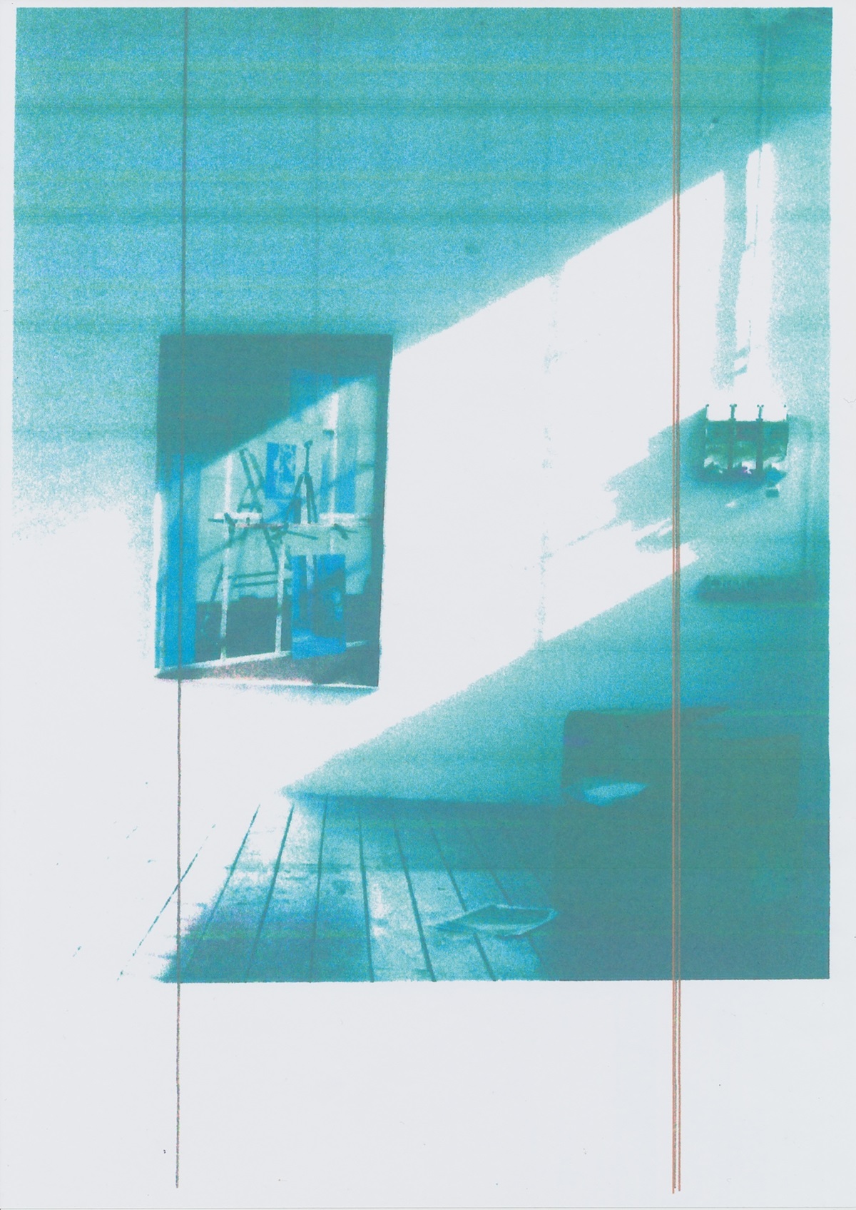 Immagine copiata realizzata durante l'inaugurazione di "Exploring the living studio" da Mucho Mas!, che mostra una parte dell’esibizione Dissolvenza di inchiostro e linee