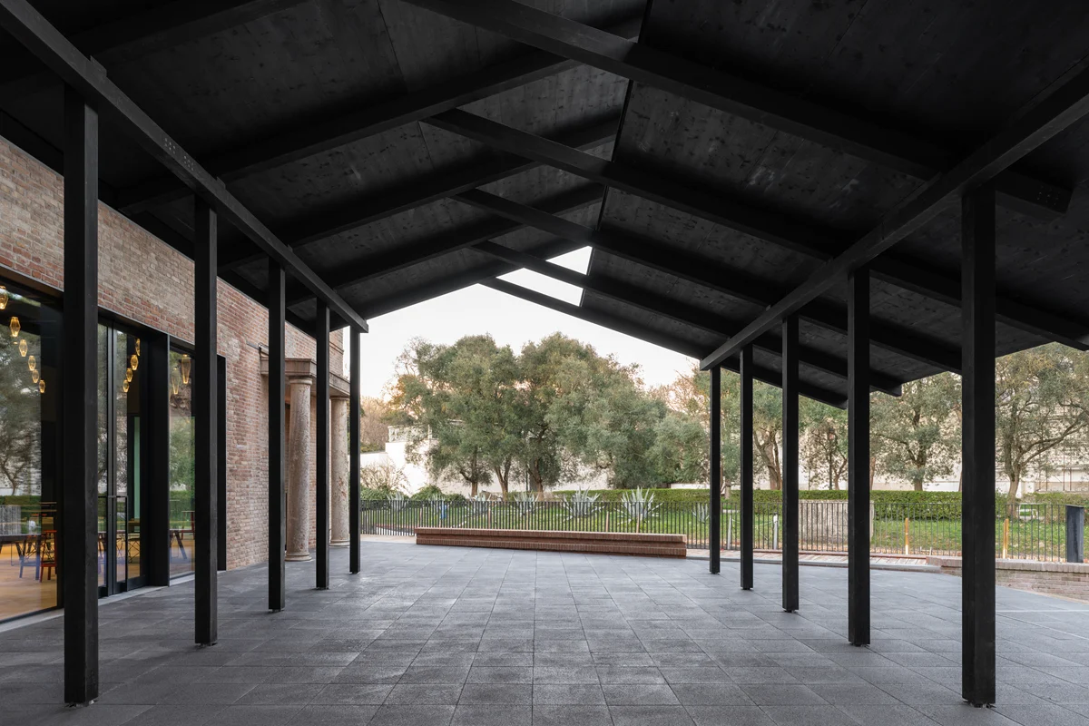 Questo è forse il punto più innovativo dell’intervento: è radicalmente cambiato il rapporto dell’edificio col contesto. Abbiamo aperto il Padiglione verso il giardino e verso l’acqua, enfatizzando questo nuovo legame con delle strutture lignee giustapposte all’esistente.