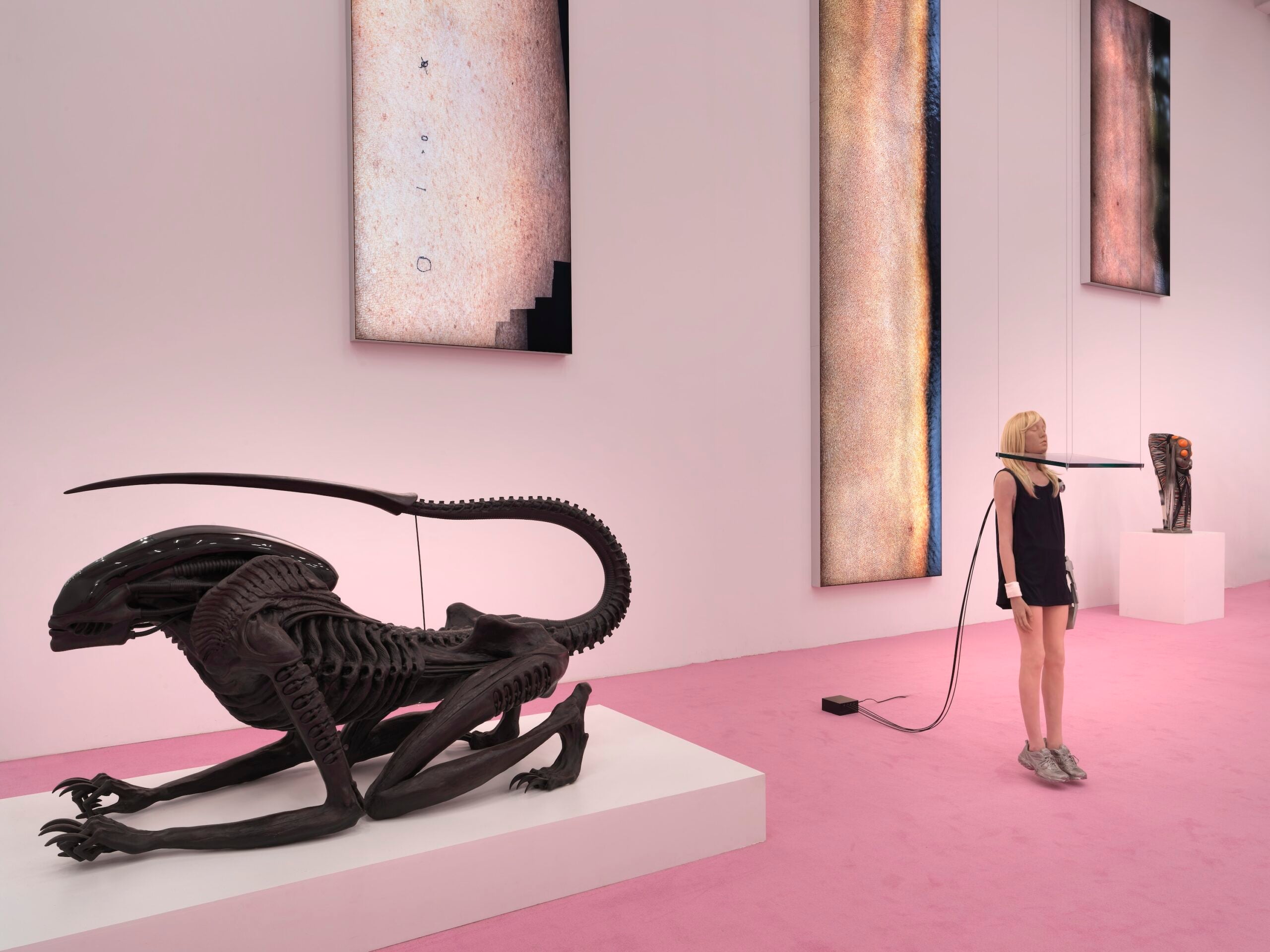 Con ogni sviluppo tecnologico che espande la nostra idea di umano, proliferano visioni di nuove architetture. C’è un piccolo nucleo di opere di bruciante attualità, come quelle di Sophia Al-Maria — il cui termine Gulf Futurism descrive la crescita ipertrofica delle città sul Golfo Persico — che elaborano immaginari visivi tra documento e finzione, interrogando le trasformazioni estreme del paesaggio del Golfo. Emirati Arabi, Qatar: negli ultimi decenni nascono megalopoli che, forse, non sono solo presente, ma laboratori di futuro. E, non senza inquietudine, ci si chiede se non lo siano davvero. C’è anche Ville fantôme di Bodys Isek Kingelez: una città immaginaria, da Kinshasa, che apre a un’altra ipotesi — un futuro possibile pensato dall’Africa, che nella mostra assume un ruolo centrale.