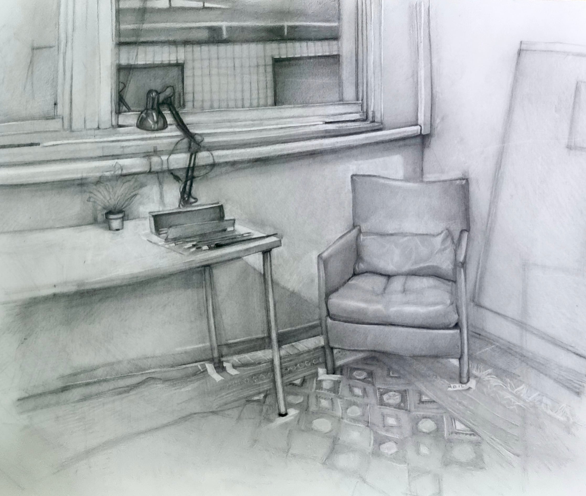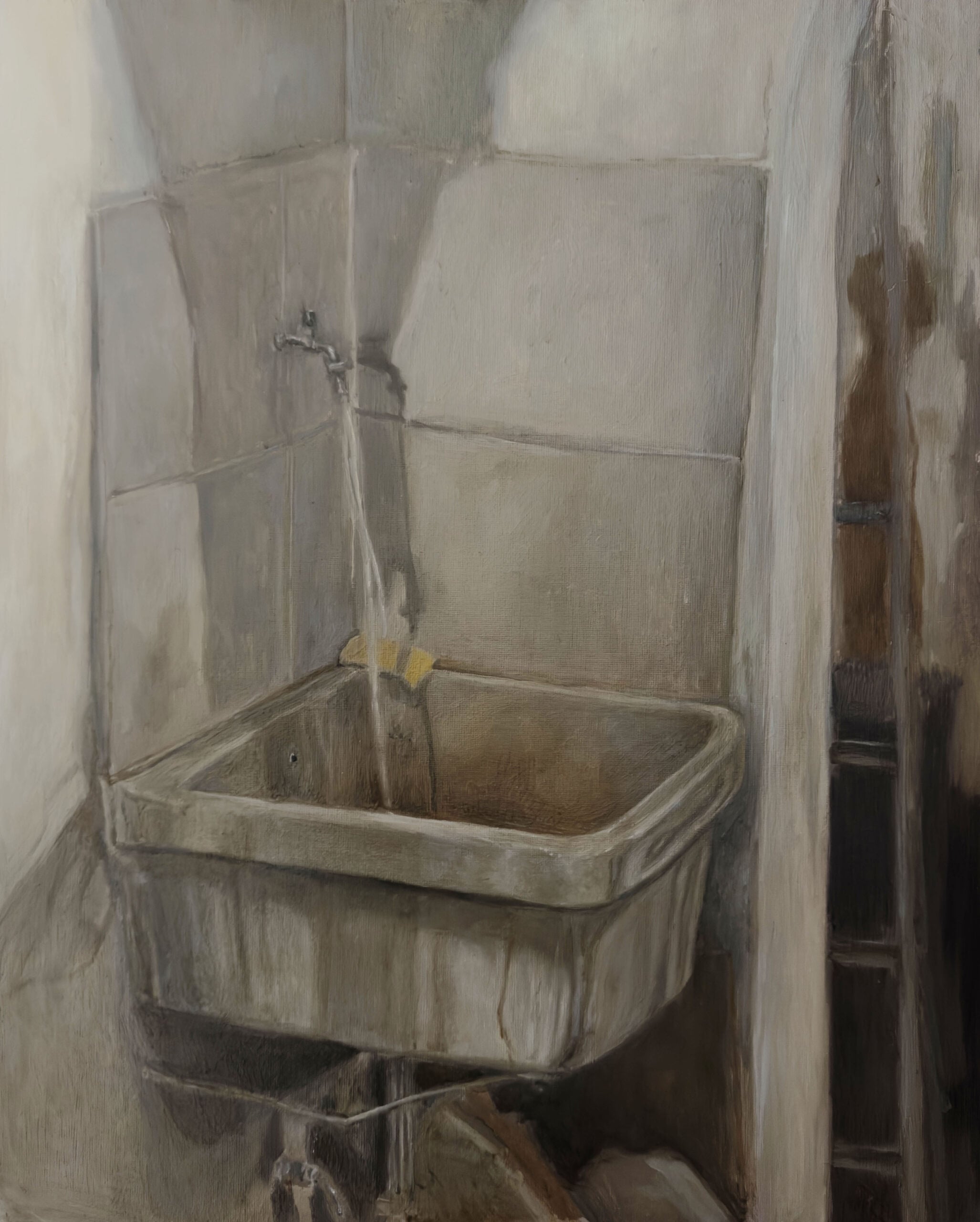 Io scelgo di lavorare dal vero perché, a livello personale, è lì che trovo la possibilità di muovermi in più direzioni. Una cosa che mi affascina molto è che la pittura è in grado di attivare un tipo di processo percettivo più profondo e intenso rispetto a quello ordinario: attraverso la pennellata si può esprimere ciò che si prova senza passare necessariamente dal pensiero razionale. In questo stato mentale, ci si accorge che la bellezza può risiedere sia nella polvere che nella luce. Secondo Giorgio Morandi: “Non vi è nulla di più astratto e surreale del reale”. E io sono d’accordo. Il mio processo è spontaneo: parto dagli ambienti che abito, ne scelgo una parte e la “cristallizzo”. Da quel momento non posso più modificarla. Questo mi interessa molto perché, impiegando molto tempo a finire un quadro, nel frattempo l’ambiente reale cambia, si deteriora. Le cose si trasformano, a volte quasi marciscono.