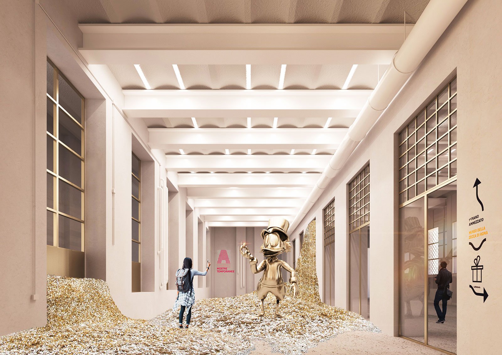 Il progetto da 35 milioni approvato nel 2021 (e anticipato appunto fin dal 2018) prevedeva il recupero della prima, storica sede della Zecca di Stato – più che un palazzo, un intero isolato tra il Mercato Esquilino e la Stazione Termini –, in stato di degrado da anni. Questo, tramite un profondo intervento di recupero dell’archeologia industriale assegnato ad Atelier(s) Alfonso Femia, avrebbe creato una nuova casa per la preziosa collezione della Zecca e al contempo offerto al quartiere uno spazio culturale polifunzionale, che includeva l’attivazione di iniziative imprenditoriali artigianali.