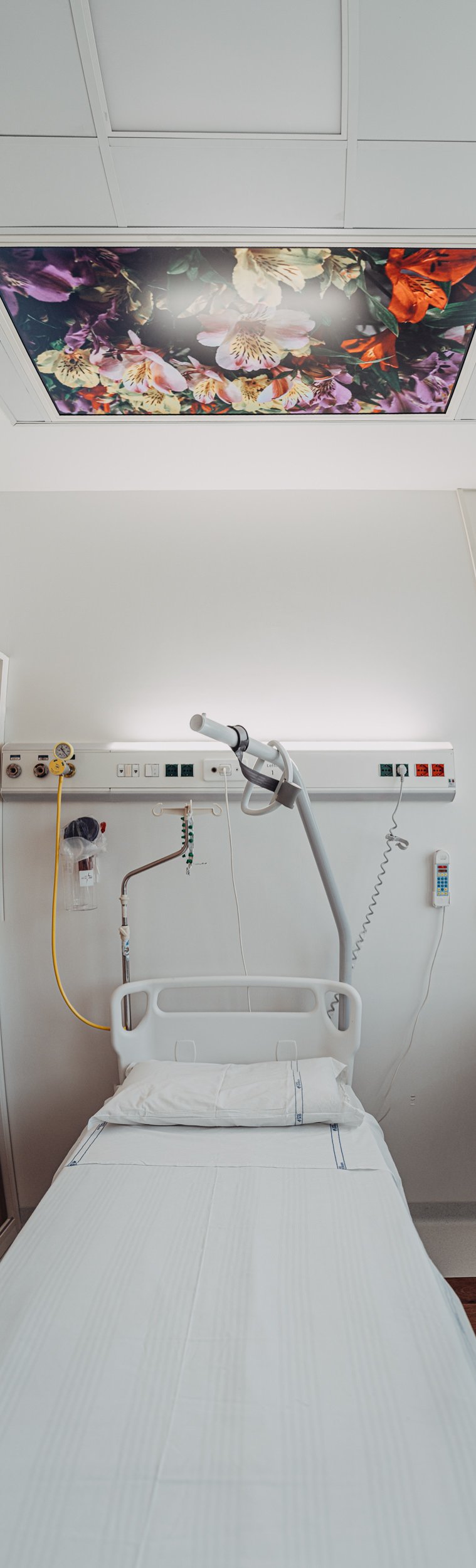 L’ambiente terapeutico offerto ai pazienti oncologici è dunque arricchito dalla presenza di molteplici forme d’arte. Ogni spazio è dotato di display interattivi, per la visione di contenuti motivazionali e artistici (come i tour virtuali della Cappella Sistina e delle Stanze di Raffaello, messi a disposizione dai Musei Vaticani), inclusi video realizzati in collaborazione con il MAXXI, con l’obiettivo di migliorare la resilienza dei pazienti. Ma il reparto può contare anche su una stanza cinema pensata per esperienze immersive collettive, e su una stanza colloqui con sistema multimediale interattivo, che vuole migliorare la comunicazione medico-paziente. All’ingresso, un’installazione statica incentrata sul tema dell’acqua accoglie chi entra.