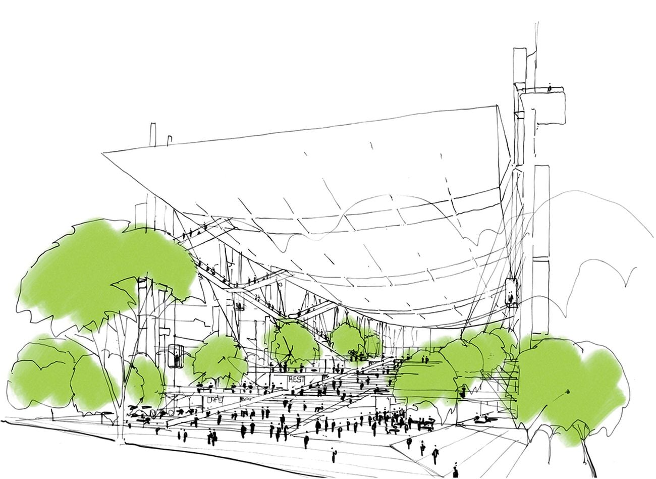Il titolo è nato da due valutazioni. A non avere un tetto sulla propria testa è il 40% delle persone del mondo. Pensaci: è veramente terribile. Siamo molto più ricchi che in passato, ma i ricchi (pochi) sono troppo ricchi e i poveri (tanti) sempre più poveri. Questo sistema non è sostenibile, si deve trovare un modo per assicurare a tutti un tetto. E dico tetto perché è una parola aperta, lascia intendere che si possa mettere il pane sul tavolo, si possano avere servizi… Insomma, che tutti abbiano la possibilità di vivere bene. In secondo luogo ho voluto fare un riferimento al Centre Pompidou, progettato con Renzo Piano ‒ siamo più o meno come fratelli, sai? Ci sentiamo quasi ogni giorno; noi parliamo lo stesso linguaggio ‒ e Peter Rice. Le prime parole con cui lo definimmo furono: “A place for all people, the young and the old, the poor and the rich, all creeds and nationalities, a cross between the vitality of Times Square and the cultural richness of the British Museum”. Ancora oggi, il successo del Beaubourg, confermato dalle tante persone che lo frequentano, è la grande piazza sulla quale affacciano le scale mobili. Lo abbiamo pensato come un sistema aperto e flessibile. Sappiamo che cambierà e dobbiamo lasciare che questo avvenga. Nella città di Londra, il 50% delle costruzioni che erano lì quando ho costruito il Lloyd’s Building sono cambiate nell’arco di quarant’anni. Ma è questa la normalità: la vita cambia, le città cambiano!