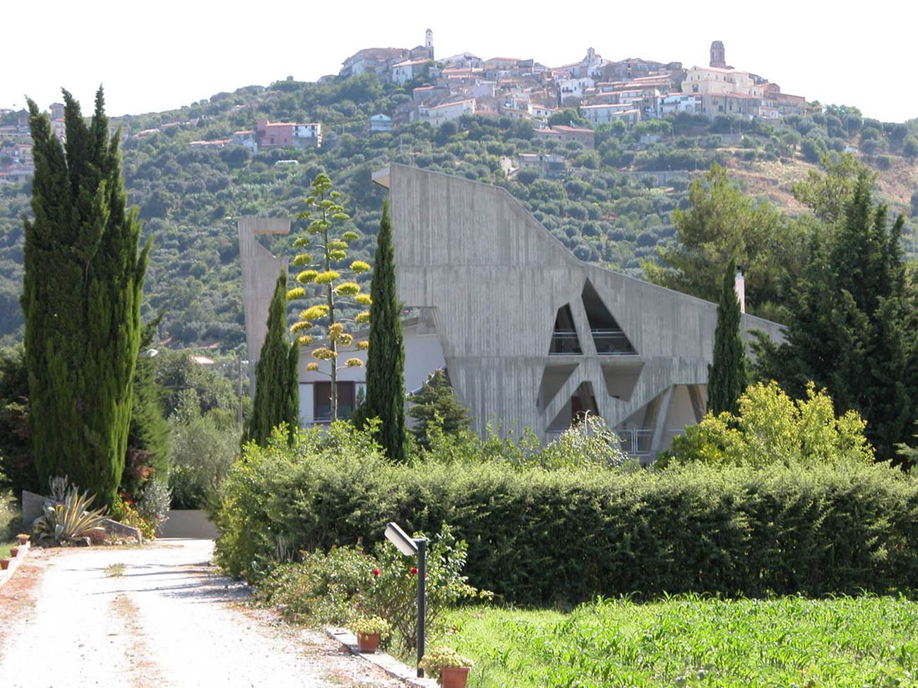 Non è facilmente catalogabile l’intervento adoperato da Southcorner e Costantino Ruocco ad Altavilla Silentina (1995-2003). Non è un innesto, né tanto meno solo una sovrapposizione o un’ibridazione. L’ampliamento “ingloba la banale preesistenza” (De Sessa C., Il dinosauro divora la banale preesistenza, in L’architettura. Cronache e Storia, n. 574, agosto 2004), la fagocita facendola sprofondare nelle sue “viscere”, tramutandosi in una “creatura”, in cui “la bellezza dei getti di calcestruzzo esalta la forza comunicativa di quest’opera facendola assomigliare talvolta a un grande animale rampante, altrove a un gioco di setti piegati, o ancora a masse sbozzate di pietra, il tutto composto in modo coerente e senza salti contraddittori” (Genovese P. V., Cubismo in Architettura, Roma, Mancosu Editore, 2010). Questo “dinosauro”, cristallizzato nell’attimo prima di emettere il suo grido di battaglia, è un transfert dei progettisti. Alla sua forza espressiva al limite della violenza fanno, infatti, da contraltare le eleganti fenditure sul cemento a faccia vista e le esili strutture che incrociano la promenade che conduce al primo livello. E non è forse proprio la tensione allo scontro, inteso nella sua accezione di gesto politico, mediata da istanze espressioniste, che anima Southcorner?