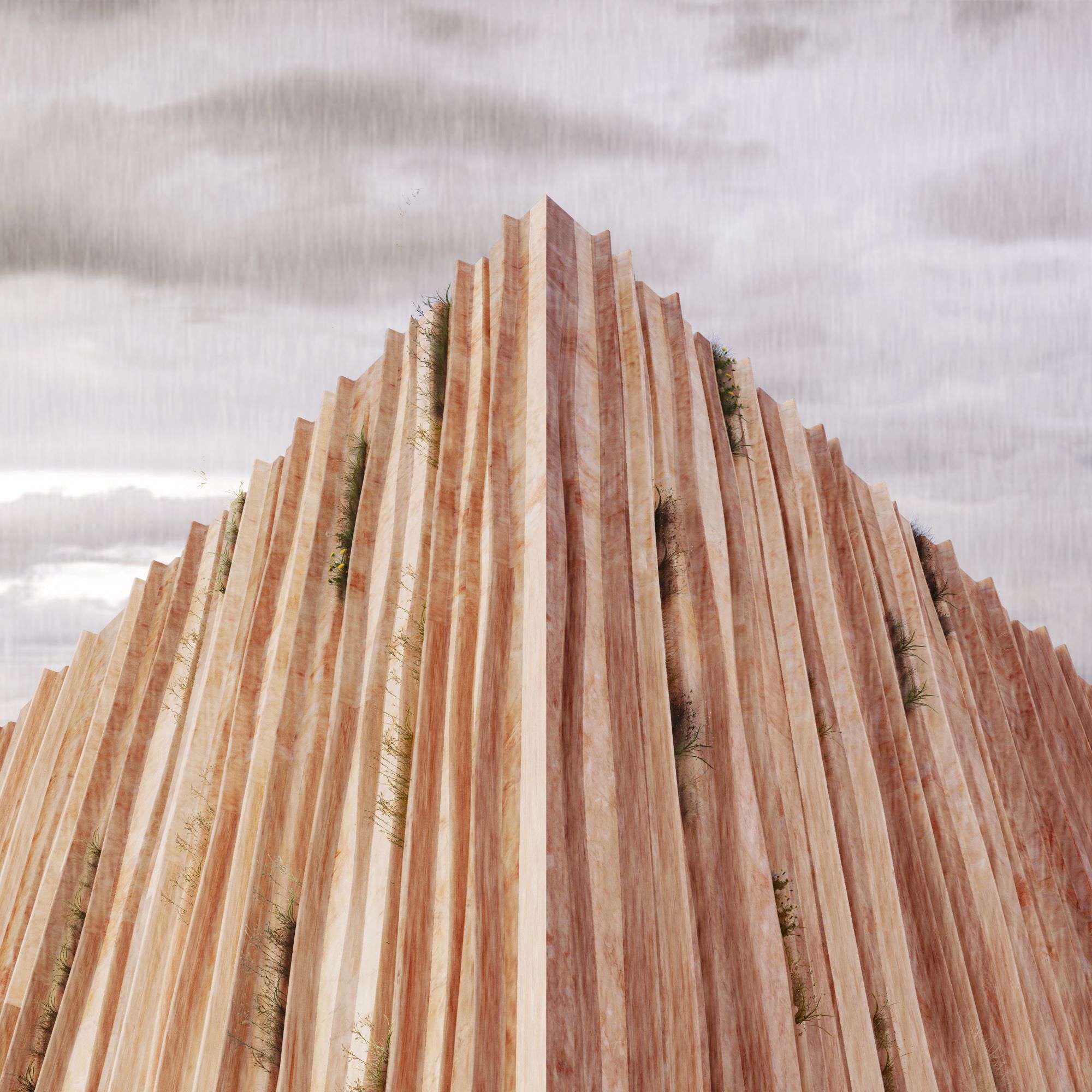 È un’esplorazione sulla possibilità di pensare la pietra delle facciate architettoniche come superficie viva. Indaga il concetto di facciata ruderali ed ecologiche, intesa come superficie porosa capace di accogliere la crescita spontanea di specie ruderali e pioniere, piante che si insediano nei suoli disturbati o marginali, tra le crepe, i cantieri o le aree industriali abbandonate. Nel progetto, queste piante diventano modello e metafora di un’architettura che accoglie l’imprevisto e che si rigenera attraverso il dialogo con gli agenti naturali. Le superfici di Breccia Pernice sono state incise e microscolpite per creare topografie che favoriscono la ritenzione d’acqua e l’attecchimento di specie pioniere. In questo modo, la facciata si trasforma in un dispositivo bio-ricettivo, dove l’acqua e la vegetazione tracciano una scrittura lenta e imprevedibile: una vera e propria calligrafia ruderale.
