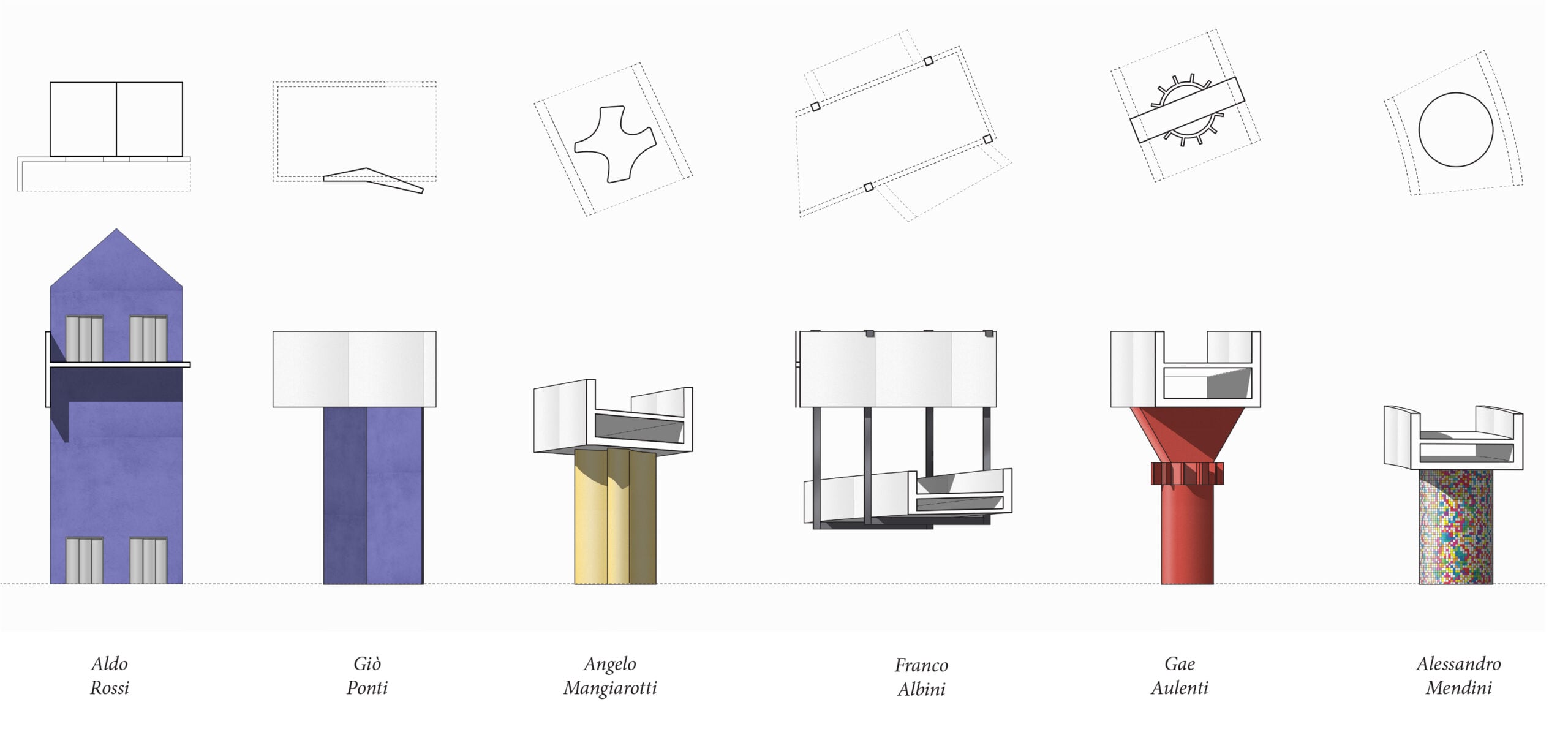 Si tratta di Aldo Rossi, Gae Aulenti, Angelo Mangiarotti, Alessandro Mendini, Franco Albini e Gio Ponti, dei quali proponete forme e rimandi con modalità che non passano inosservate.