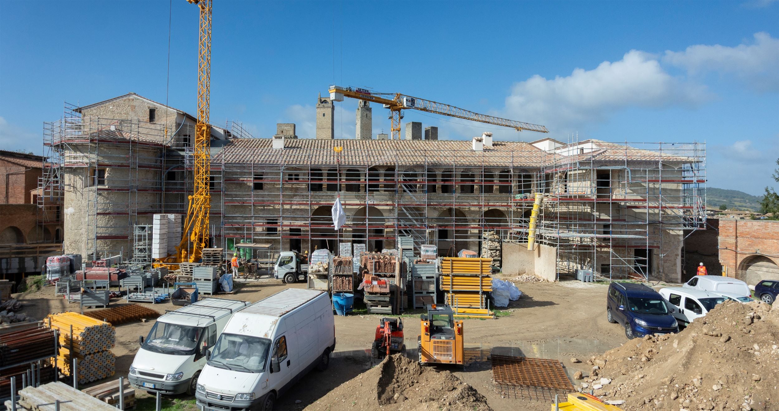“Qui venivano Girolamo Savonarola e Dante, poi è stato un carcere e infine a lungo abbandonato”, ha ricordato il presidente della Regione Toscana, Eugenio Giani, specificando che a San Gimignano si sta lavorando alla realizzazione di “un complesso polifunzionale che avrà una capacità di attrazione pari a quella delle torri che l’hanno resa famosa nel mondo”. Ribattezzato ExCelle, con un evidente rimando alla dimensione abitativa monastica e alla parallela volontà di evocare la dimensione dell’eccellenza con la prossima apertura, questo intervento di rigenerazione è “di grande importanza per la nostra comunità, ma direi per tutta la Val d’Elsa e per la Toscana” ha precisato a sua volta Andrea Marrucci, sindaco di San Gimignano. “Dopo decenni di chiusura, il Complesso di San Domenico torna ad aprirsi a cittadini e visitatori: non recuperiamo solo un edificio, ma restituiamo alla città una parte fondamentale della sua anima”, attraverso “un progetto culturale, urbanistico e sociale insieme”, ha aggiunto Marrucci. Sugli aspetti salienti dell’iter in corso abbiamo infine sollecitato Beppe Costa, presidente e amministratore delegato di Opera Laboratori.