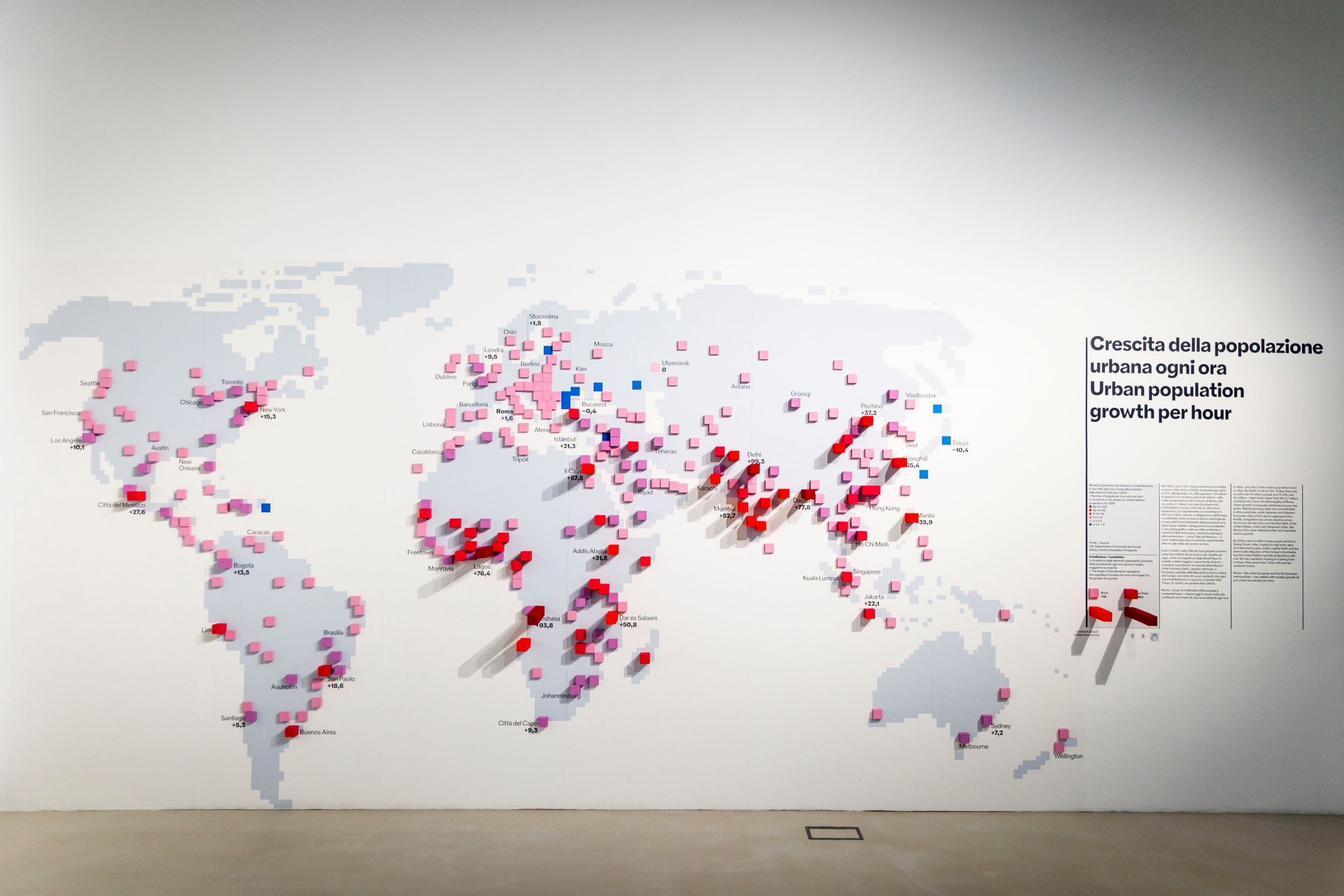 Tra i fenomeni di origine antropica che hanno plasmato il paesaggio globale, i processi di urbanizzazione sono tra i più importanti. Le città del mondo hanno ereditato scenari fisici tra loro diversissimi e si sono progressivamente adattate a svolgere ruoli differenti in un sistema sempre più interconnesso. In questo contesto, Roma si configura come un caso unico: definita la città “fondamentale” della storia, è nell’immaginario collettivo mondiale l’Urbe, Caput Mundi, la Città Eterna. Ricky Burdett, urbanista alla London School of Economics, dopo aver trascorso molti anni nella Capitale e aver studiato le città globali, è tornato come curatore della mostra e del catalogo dal titolo Roma nel Mondo al MAXXI. Nel definire la Capitale, accanto alla storica dimensione simbolica e soggettiva, esplorata nella sezione Roma nell’immaginario del mondo, Burdett propone un cambio di narrazione, basato sull’analisi dei dati e delle differenze con le altre grandi città europee, asiatiche, africane e americane. La mostra si articola intorno alle più importanti dinamiche urbane che hanno dato forma alle città del XXI Secolo – spazio, mobilità, ambiente, società – sviluppando altre due sezioni: Dna di Roma e Confronti globali.
