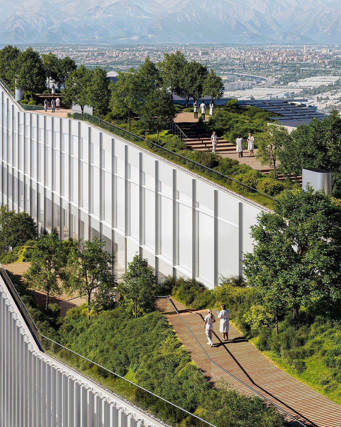 Ci riportano in Italia quattro ulteriori progetti in cui Piuarch è attualmente impegnato. A Milano, entro l’anno si punta al completamento definitivo dell’headquarter Snam, nel distretto Symbiosis; tempi più lunghi per lo Human Technopole HQ in MIND, il cui progetto esecutivo è in progress. In questo caso, si prevede che la chiusura della gara d’appalto avvenga entro il 2026; da cronoprogramma il cantiere avrà una durata di 1100 giorni. “Nel suo sviluppo siamo riusciti a mantenerci fedeli al principio su cui abbiamo lavorato fin dalle fasi iniziali del concorso nell’area di Expo 2015 Milano. Volevamo che fosse un edificio permeato sugli spazi di relazione, tentando di rafforzare l’idea di common ground alla base del masterplan di MIND. È un’architettura molto complessa – i laboratori di ricerca biomedica sono quanto di più complesso che si possa progettare in questo momento -, con una piazza coperta e una copertura verde, che sarà un giardino pensile” specifica Pallares.