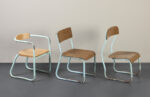 Nonostante la zona di ubicazione sia il rione popolare omonimo, nato in epoca fascista quale nucleo abitativo per le famiglie impiegate nelle vicine industrie tessili, la relazione con il verde e con il paesaggio circostante viene sottolineata da Terragni attraverso l’uso di grandi finestre, importanti per la luce e l’aerazione naturale. Come si legge nella relazione di progetto compilata dall’architetto: “Le norme costruttive adeguandosi a tali esigenze si risolvono in una architettura che spalanca le pareti verso il sole, il verde, la luce, la natura. Architettura Naturalista che dal razionalismo prende le forme, dalla nobile missione sociale, il contenuto spirituale”. L’arredo riflette la stessa libertà spaziale, con uno sguardo attento verso il modernismo d’Oltralpe, divenendo “mobile”. Come spiega molto bene Matteo Pirola nel suo saggio in catalogo “Arredare la modernità”, Terragni abbandona il tradizionale banco lineare ligneo per progettare banchi e sedie individuali, realizzati con materiali che rispondono alle potenzialità di riproducibilità tecnica che l’industria mette a disposizione, traghettando l’arredo verso il disegno industriale. La flessibilità aggregativa dei banchi è tanto sorprendente da spazzare via tutto ciò che l’aveva preceduta. La leggerezza della struttura in tubolare metallico si ritrova parimenti negli arredi per i docenti, con i brillanti esempi della sedia Lariana e della poltrona Benita, le cosiddette sedute “elastiche”. “Nella tipologia della “seduta a sbalzo” spiega Pirola “Terragni innova ulteriormente questo tipo grazie al “doppio sbalzo”, ovvero una continuità̀ che dalla base va al sedile e dall’altra parte dalla base va allo schienale, lasciando le due parti separate e quindi garantendo due momenti di elasticità̀ indipendenti, uno dato dalla seduta e l’altro dato dallo schienale.” Un “razionalismo organico” che spazia fino ai termosifoni, che si staccano dalle pareti conquistando il centro della stanza, o le sfere in vetro opalino (le lampade) sospese per diffondere la luce punteggiando gli alti soffitti dell’Asilo.