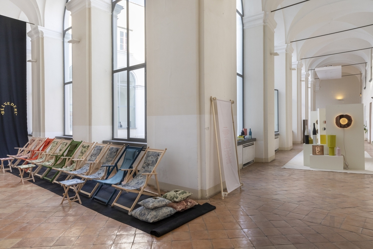 È tornato, ma con un progetto più ampio, il Grand Tour di Belvedere – vedutismo contemporaneo (Luca de Bona, Massimiliano Tuveri e VZNstudio), che per questa edizione, invece di mobili contenitori, presenta sdraio con stampe grafiche di tre destinazioni in località vacanziere tipicamente italiane ‒ Cortina, Sorrento e Rimini ‒, declinando con eleganza il concetto di stereotipo e arte applicata.